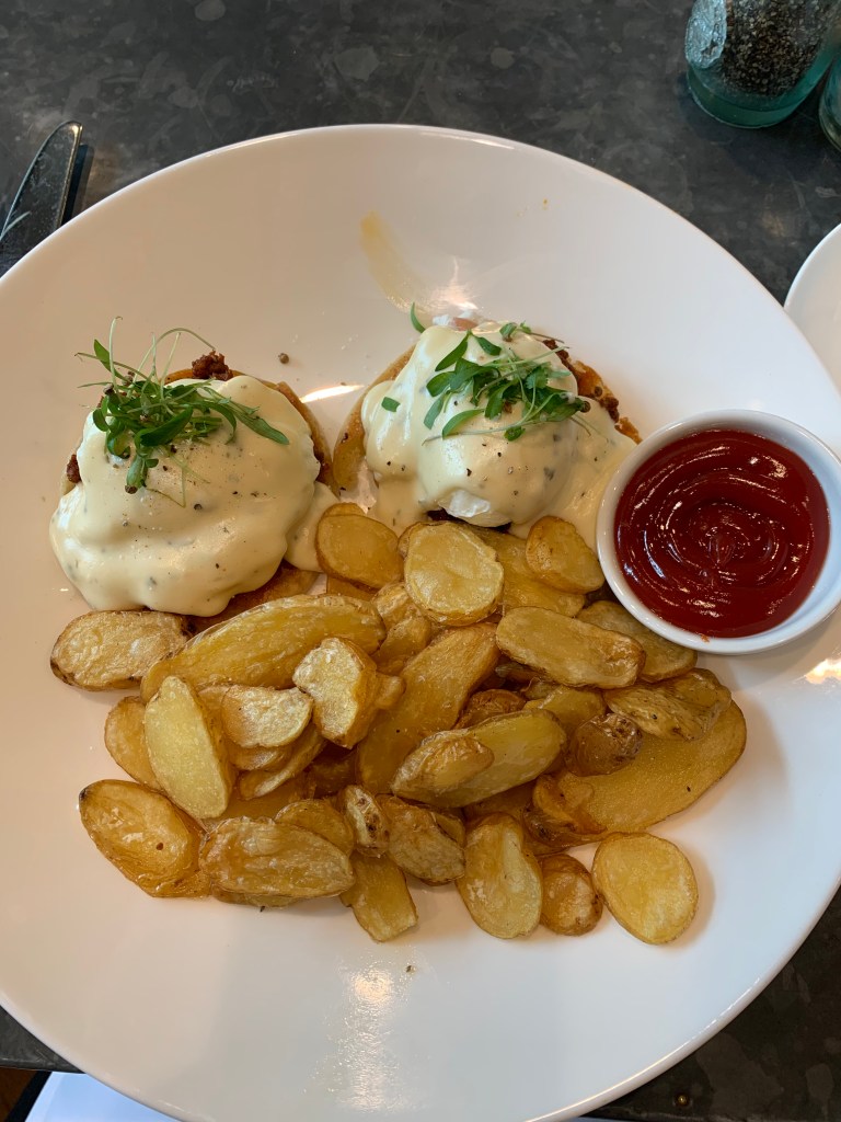 And what’s better than eggs benedict and a frothy, hair-sizzling cappuccino for brunch? The eggs benedict at Oxford Exchange is made with chorizo sausage instead of the paper-thin Canadian bacon you usually get. It’s delicious.