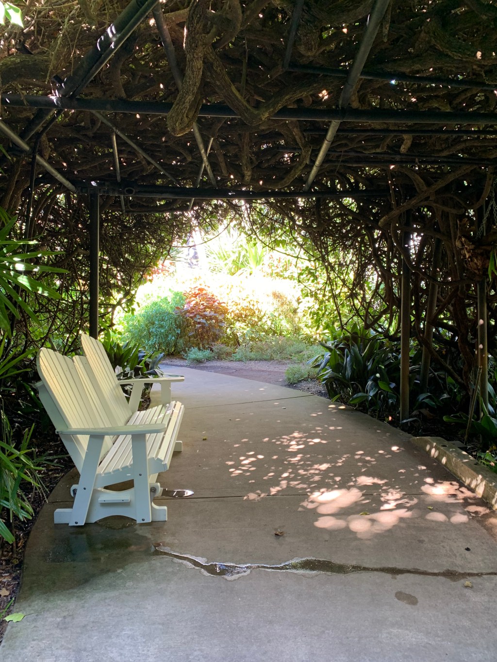 I liked the way you could turn a corner and be surprised. You might discover a shaded trellis with a bench, a manicured lawn perfect for spreading a blanket and laying out the sandwiches and lemonade, or Adirondack chairs in a perfect conversation circle. Pick your spot and hang out.