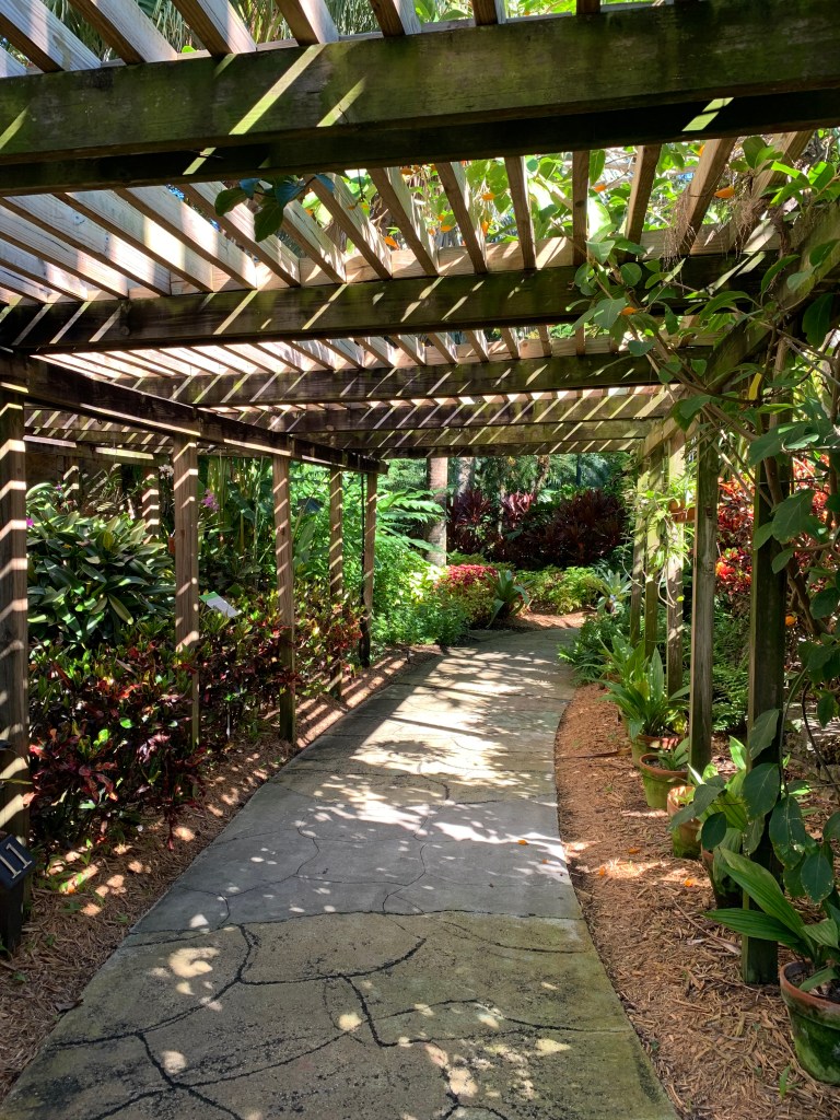 The story has it that back in 1911, six acres was purchased by George Turner, Sr. He drained a lake on the property and what do you think became of the rich soil at the bottom? He used the space for his favorite hobby – gardening. I gotta tell ya’, I chose to retire in Florida because I wanted a garden. I had dreams of a secret spot in my backyard filled with flowers and heady aromas. It’s a darn good thing I couldn’t afford to drain a lake because my space is a disaster. This one is pure inspiration.