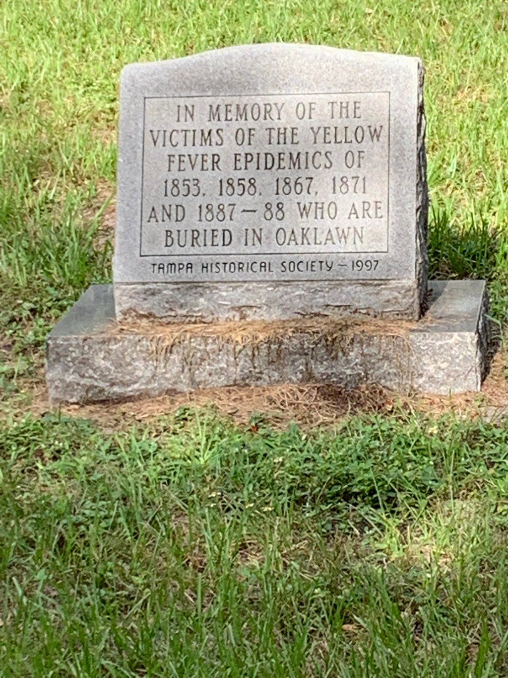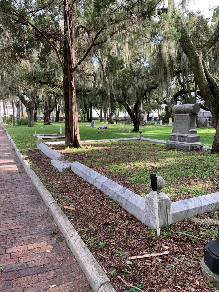And then we get to Oaklawn Cemetery, created in 1850. It has the graves of Charlie Wall and the three Jesuit priests. There are commemorative plaques to the yellow fever victims who were buried in mass graves and to confederate soldiers whose remains were discovered when they excavated the ground where Fort Brooke once stood. There are 13 of Tampa’s former mayors and one Florida Supreme Court Justice buried here. Vincent Ybor, the man responsible for establishing Ybor City and its vibrant cigar industry is here. There are two pirates, one of them with a headstone that reads, “found shot to death in the woods.” There’s a sheriff, a woman born in 1796, a prominent Floridian who was a friend to Chief Billy Bowlegs, and even two markers without names – one saying Murdered and one saying Hanged. It’s a beautiful place during the day but, of course, the tour group is seeing it at night. That’s a whole different ballgame.
