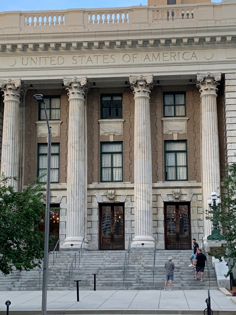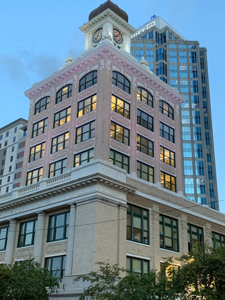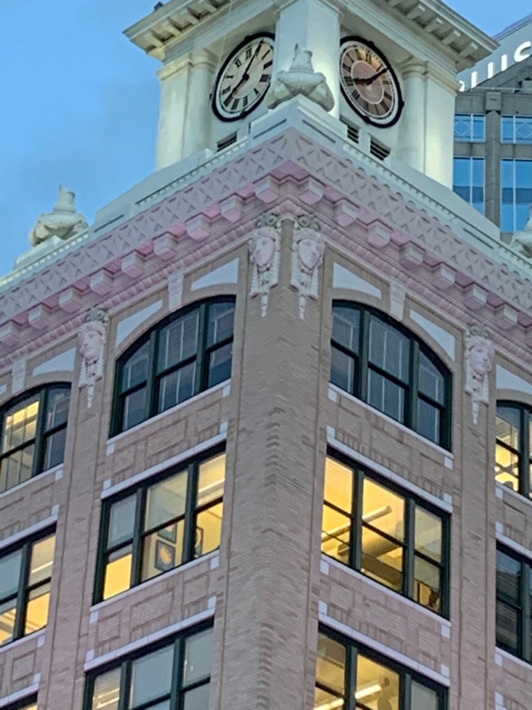 Notice the faces between the window sections beneath the ledge. Those are Seminole Indian maidens. The legend is that the Seminole Indians protect Tampa from the winds and rains. Coming to Tampa from Las Vegas, I wasn’t accustomed to hurricane forecasts. They were (are) a bit frightening. But I have noticed that they rarely make it to Tampa. Must be that legend.
