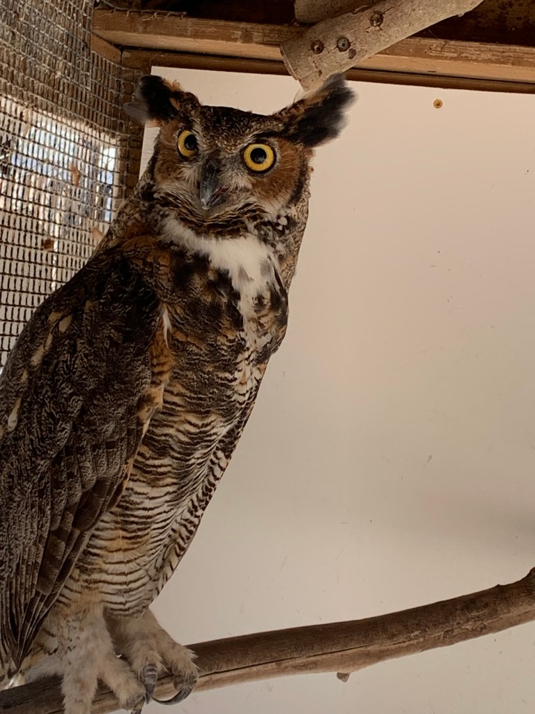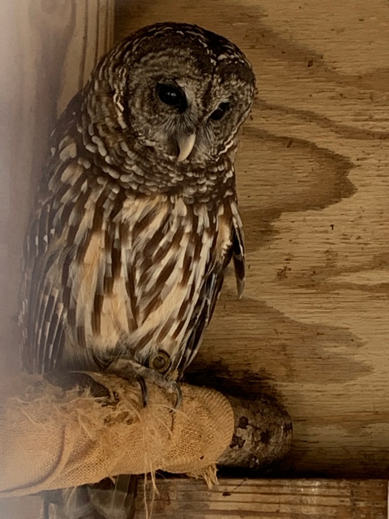Rufous had flown into something and lost his eyesight. Over time, one eye repaired itself but the other one never did. I always worry that birds are miserable when they can’t soar through the skies like they were meant to do, but Rufous seemed quite content. In the wild, Eastern Screech Owls live to about 8 years old but with the veterinary care they get at the sanctuary, can live to about 15.