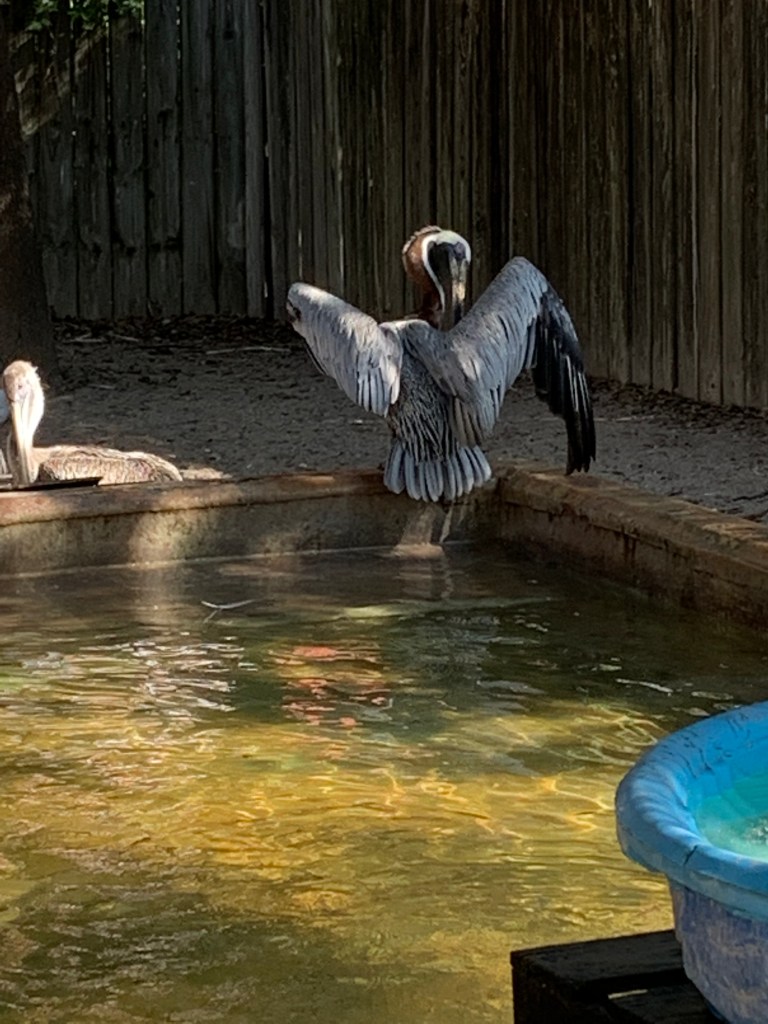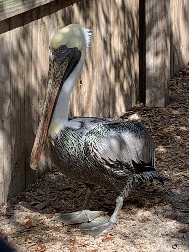 The Seaside Seabird Sanctuary is an unassuming property scrunched between high-rise apartment buildings and is a bit hard to see at first glance. Look for the giant pelican statue out front. It has a hook in its mouth and a line wrapped around an injured wing.