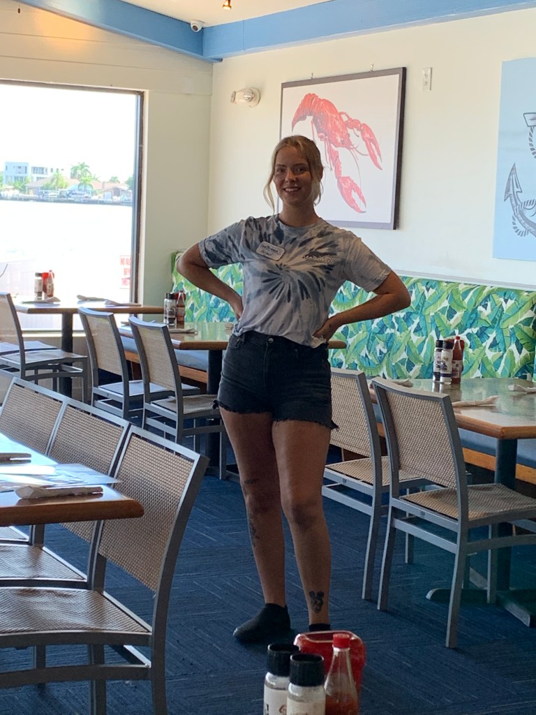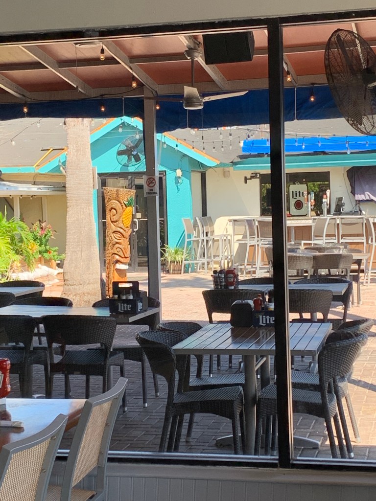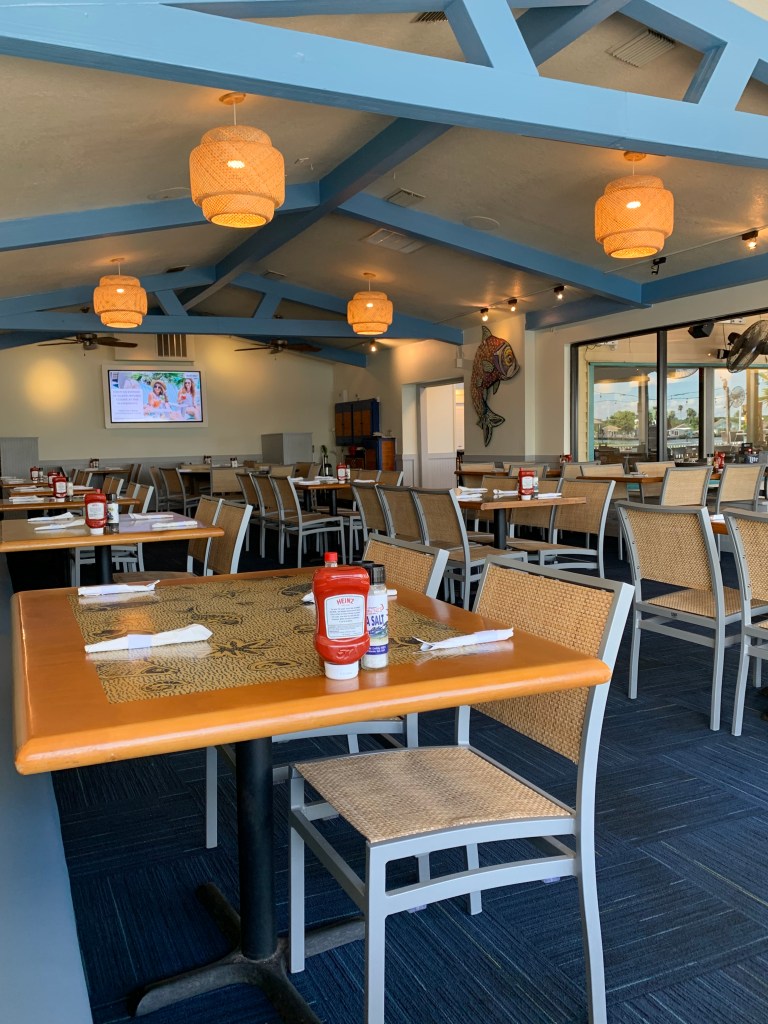 The place has an awesome view of the water, complete with majestic seabirds perched on nearby posts. You can sit inside and cool off or enjoy the water view from the outdoor deck. There are plenty of shaded tables so you won’t get sunburned. They even have their own dock for boats to drop off patrons. Why then, weren’t they packed?