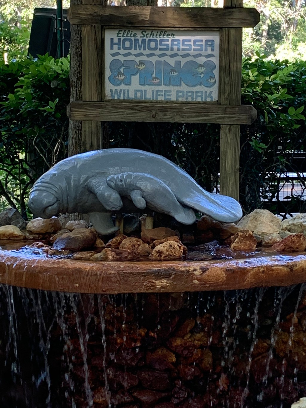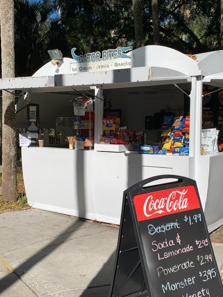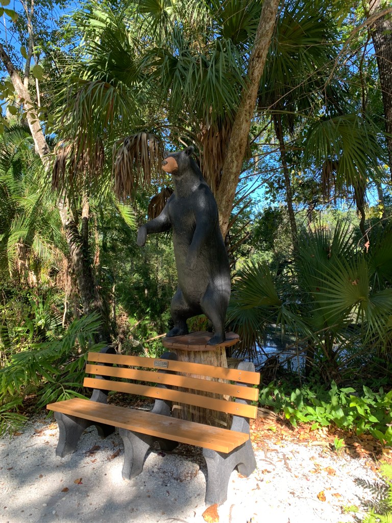Homosassa Springs Wildlife State Park, one of Florida’s 1,000 springs, is a gem. The entire trail is only about 1.1 miles and an easy walk. I highly recommend it. It’s well kept, has wide sidewalks and boardwalks, great signage, lots of comfy benches if you need to rest, and a couple of places to grab snacks or a drink. The staff is pleasant and helpful and great at pointing out the best places for viewing the manatees. I’ll get to them later.