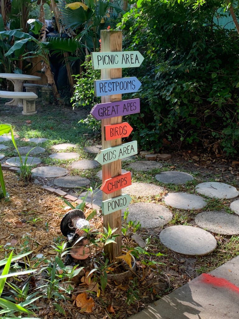 It’s a small sanctuary, easily walkable, and with a large picnic area, small garden-like resting area, and good signage. You can’t get lost. Although it’s a primate sanctuary, over the years, they’ve also rescued exotic birds, alligators, lemurs and a tortoise named Poncho that they occasionally let out of his fenced-in area to roam around. I mean, he’s not likely to make a run for it, right?