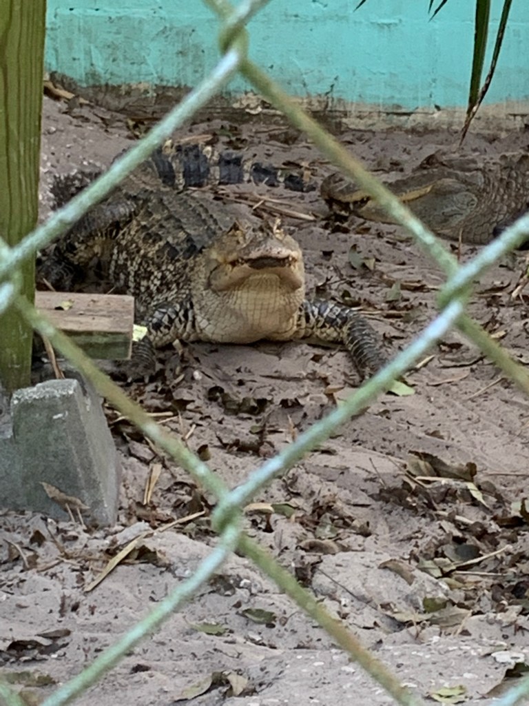 I also discovered Magillan, a chimp who eyed me for a minute before patting the top of his head and nodding “yes.” It took me a minute to realize he was indicating the visor I had on and asking for confirmation. When I touched the brim of the visor, he nodded “yes” and patted his head again. There was a board member at the sanctuary that day who told me years before they’d had a volunteer who was teaching one of the chimps sign language. As it turned out, many others nearby were paying attention. I’m guessing she was wearing a hat on some of those hot Florida days and Magillan liked it.