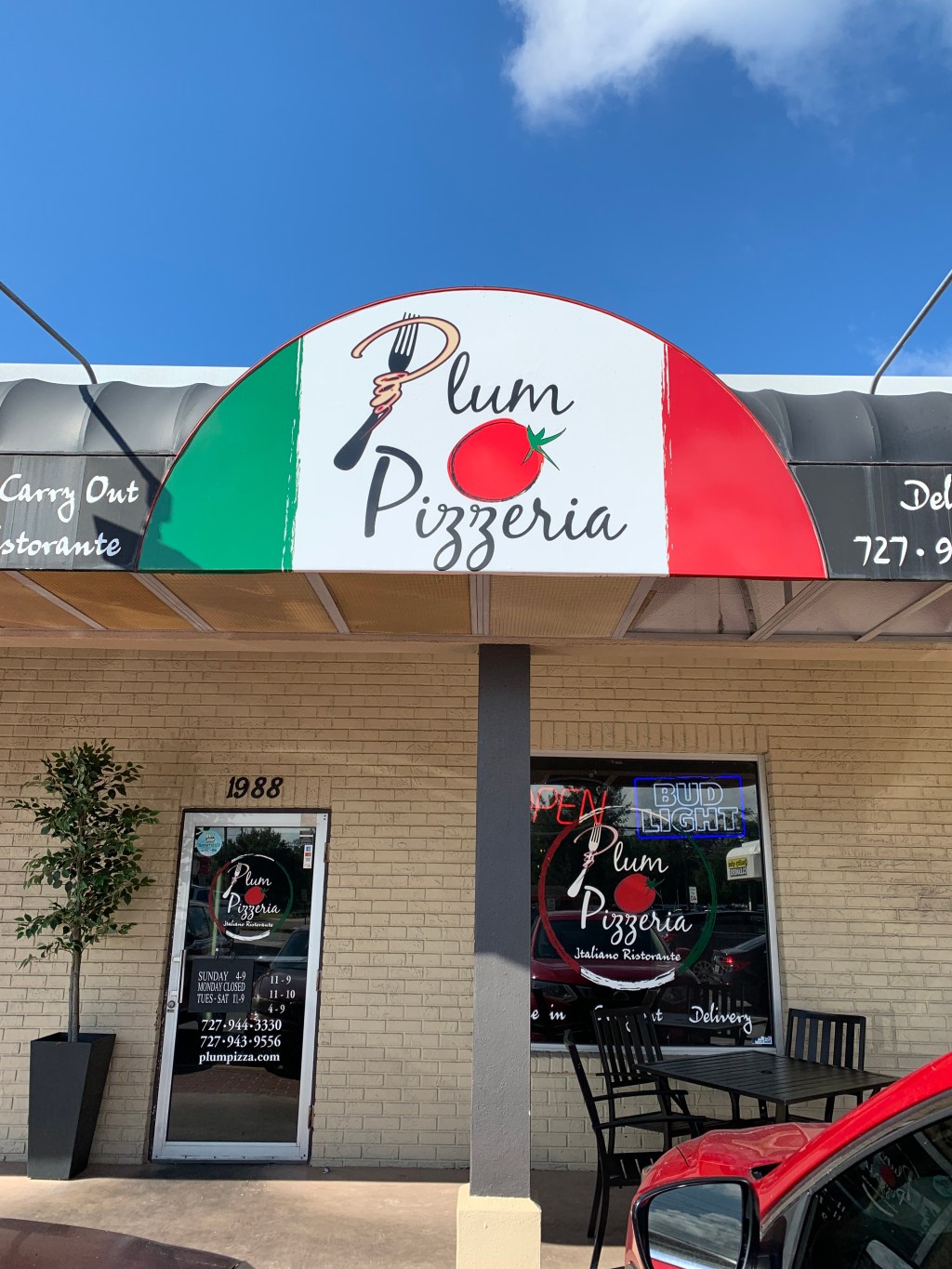 The Plum Tomato, about a one-minute drive down the street from the Suncoast Primate Sanctuary (if you’re sightseeing in the area), has a very attractive, colorful outside sign. For me, that was the best thing it had going for it. I’d have been better off making the 10-minute drive to Tarpon Springs for some authentic Greek food.