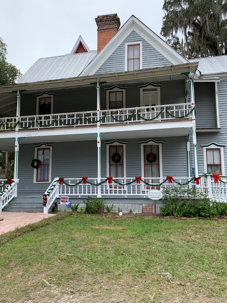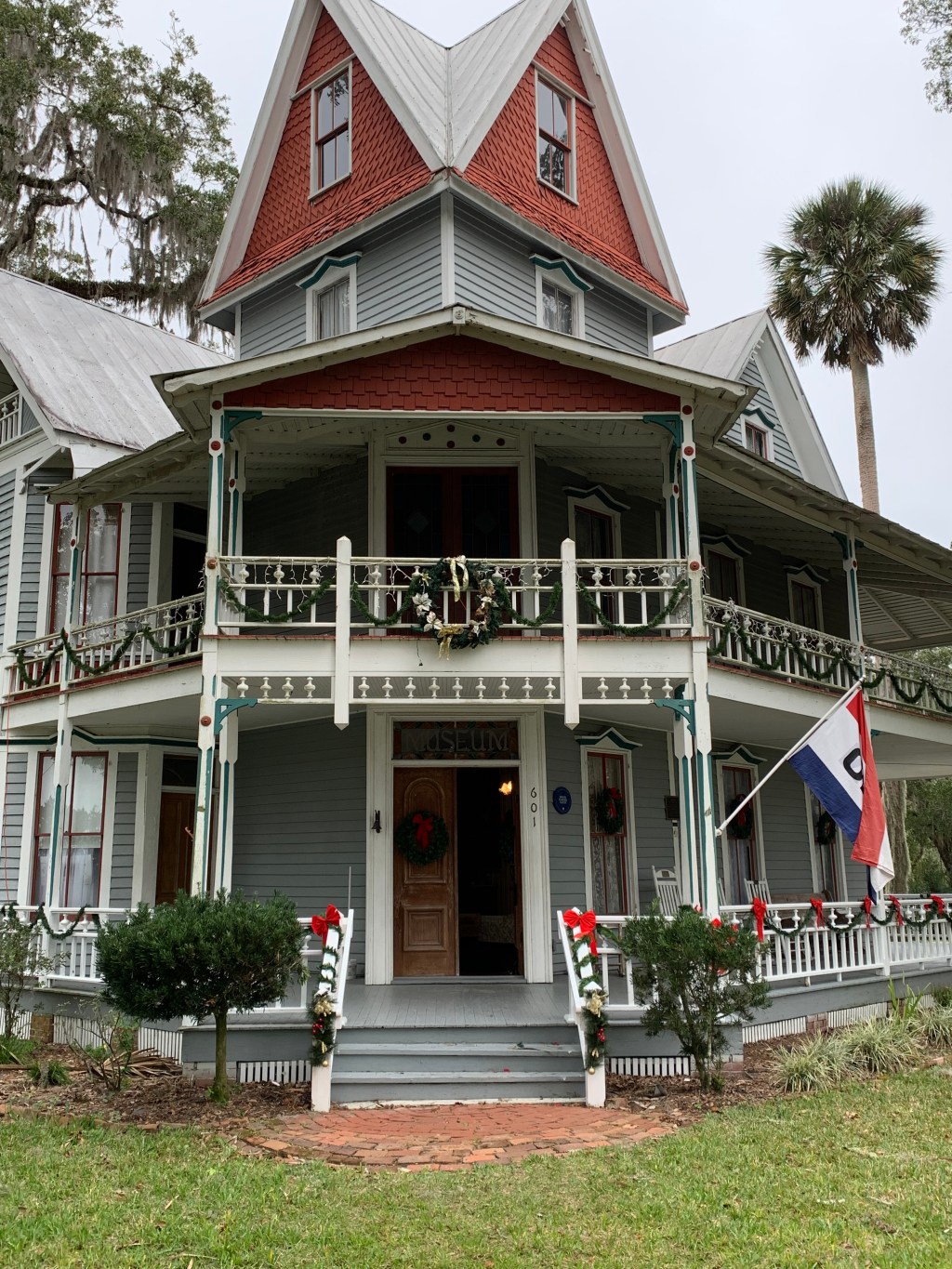 This beautiful, 4-story, 7-gable, 14-room “Painted Lady” Victorian home (called the Heritage Museum online), began as a 4-room home in 1855. The Armed Occupation Act of 1842 stated that “any settler who came to Florida, lived on the land for five years, cultivated five acres, and built a dwelling” would be granted 160 acres.
