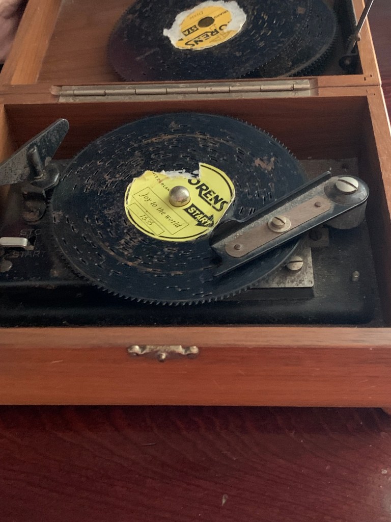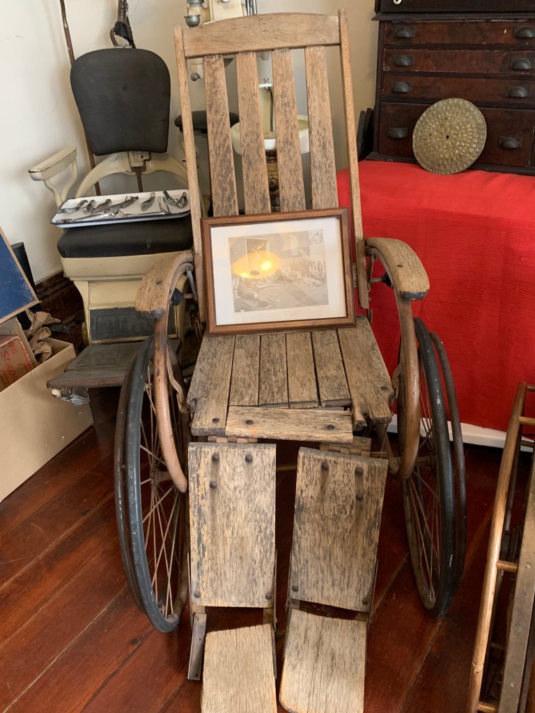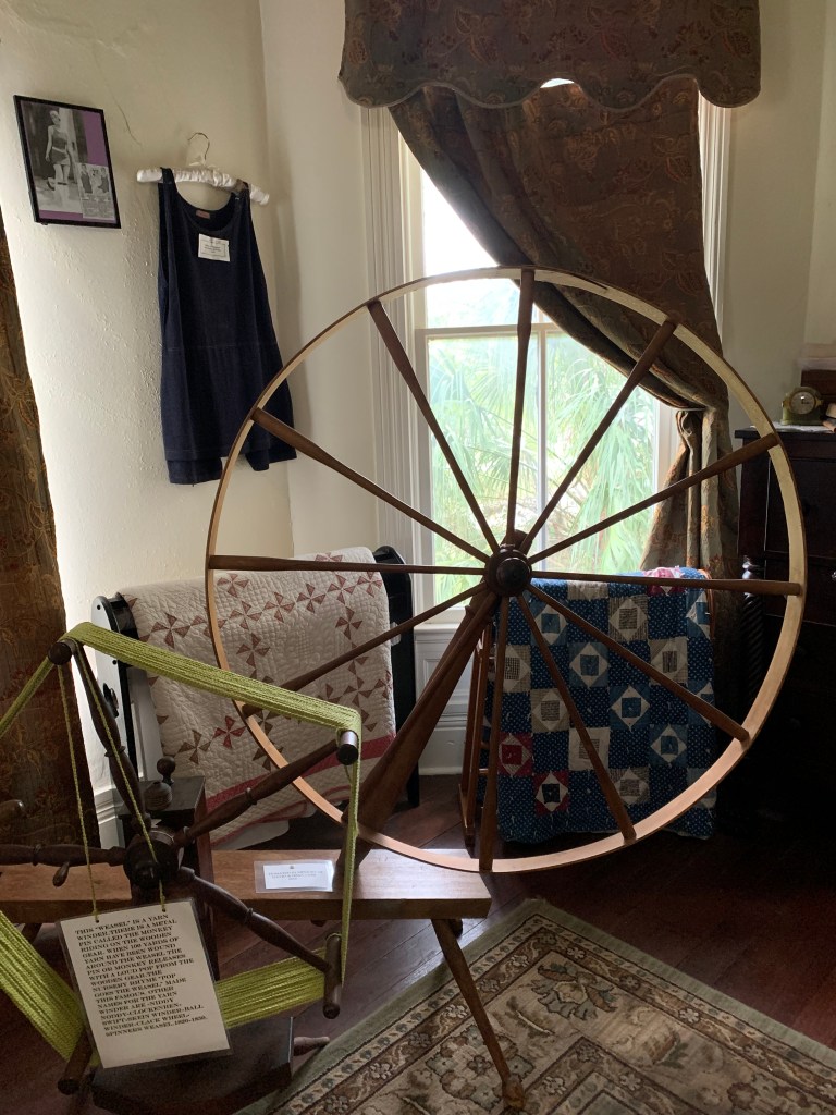 The May-Stringer house is full of interesting treasures and I’m pretty sure you couldn’t point out a single thing that the volunteers couldn’t explain to you. Take for instance, the music box (below left). It’s over 100 years old and still works. There’s a wonderful collection of silver spoons, a loom, and a “teaching book”(bottom left). The teaching book is pages and pages of pictures of everyday things that mothers would teach their young children about – horse, bird, bonnet, etc. The room with Civil War artifacts contains a wheelchair and a field kit for doctors. Note the bone saw.
