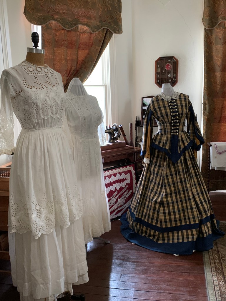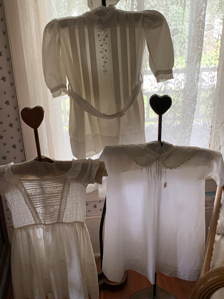 And then there were the clothes. The lacework on the dress in the foreground was stunning. Good thing I didn’t live back then because I can’t imagine anyone ever allowing me in something that delicate. I’m sure I’d have had food stains on it somewhere. And the children’s clothes? Unimaginable. Was everything always white? Surely there had to be some royal blues or mossy greens – something to hide dirt, grass stains, and perhaps pet hair.