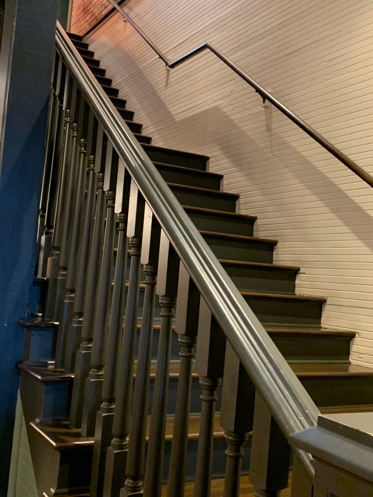 The basement also has an interesting room called “Archives.” It contains shelves packed with all kinds of treasures – old cigar boxes, knickknacks, discarded signage and more. And at the very back, is a narrow staircase that leads to a false door. In the early days, money was kept safely tucked away.