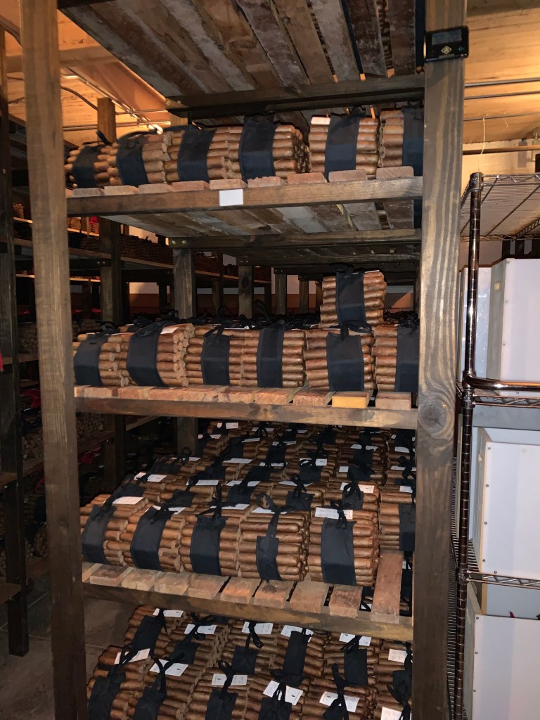 The basement area is where they store and age the cigars. The building’s bricks retain the moisture that’s needed for the tobacco to cure properly. Not only was the basement quite a bit cooler than the first floor, but each room seemed to have its own little micro-climate.