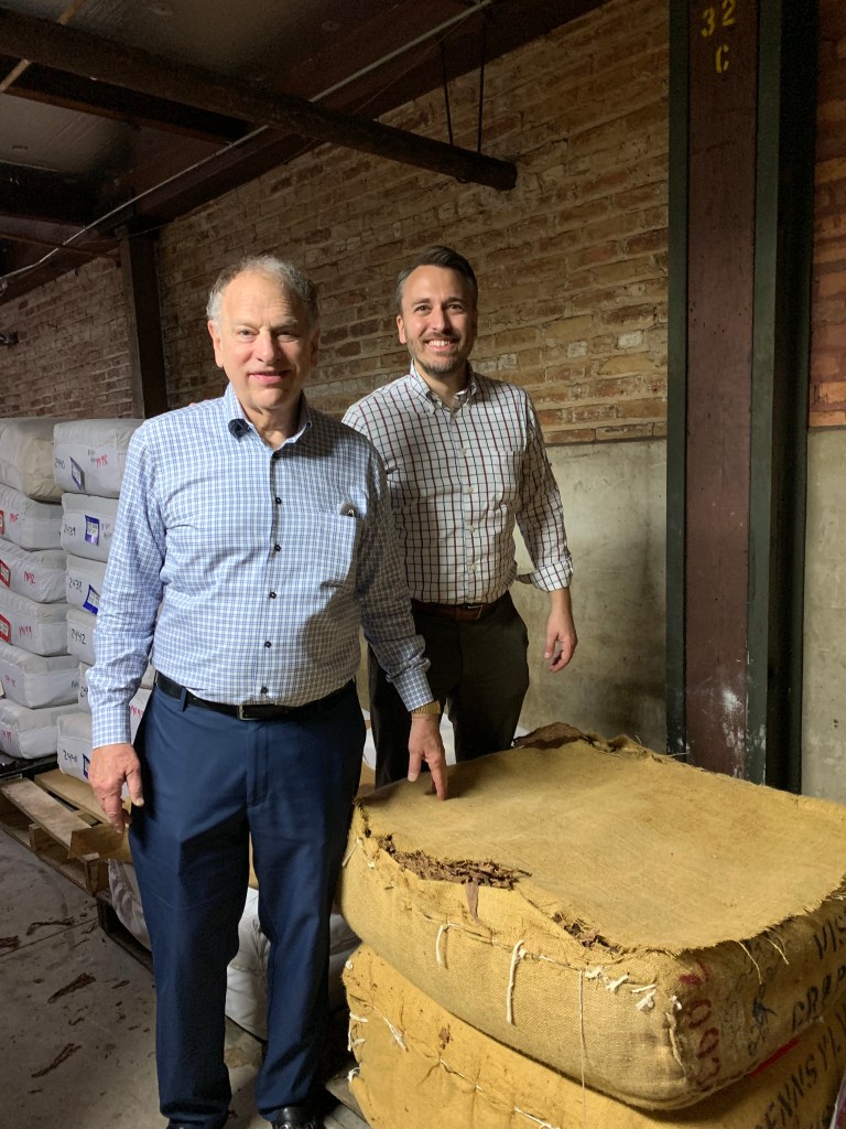 Today, El Reloj is the last working cigar factory in Ybor City. It is still owned and run by the Newman family. The day-to-day operations are overseen by Drew and Eric Newman. During the tour, they happened to be in the basement checking out bales of tobacco leaves and so I asked them to pose for a photo.