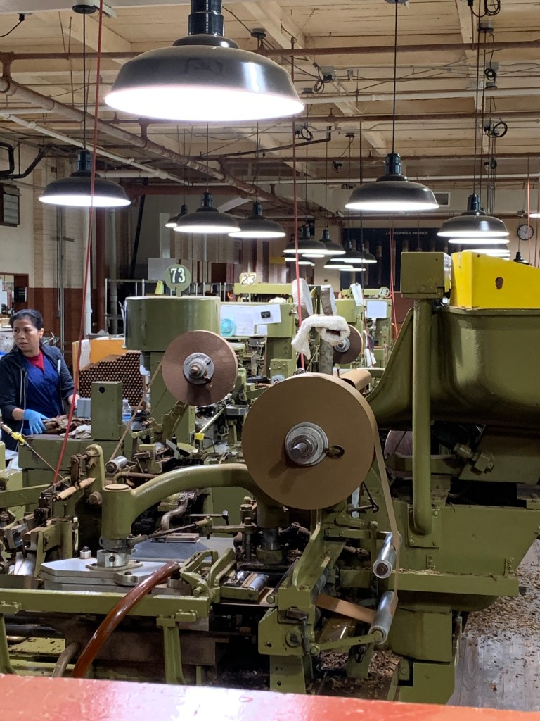 And as for the employees, they are amazingly adept at working with these 100-year-old machines. The machines don’t stop for anything, but the workers had no problem keeping up with the pace. I couldn’t help but think if you stuck me in there, you’d have a replay of the “I Love Lucy” episode in the candy factory where she couldn’t keep up with the conveyor belt. I would be the comic relief for the staff.