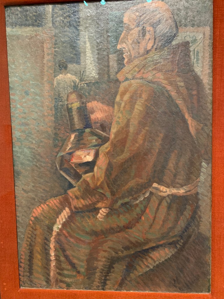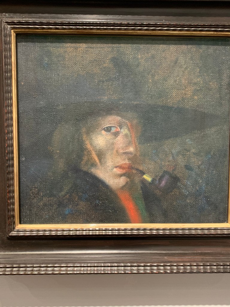 However, Dali is, I think, most recognized for his Surrealist paintings. Those are similarly incomprehensible to me. This one is called Daddy Longlegs of the Evening – Hope! (1940). The appeal is lost on me. I wasn’t inspired to spend time contemplating someone else’s dream, what it had to do with hope, or even where the daddy longlegs was in the painting. I have enough trouble with my own dreams. I moved on.