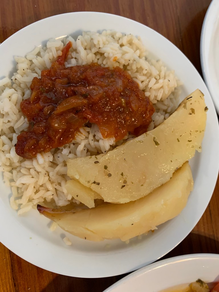A very friendly, helpful waitress approached and, in short order, made up for my first impressions. I took her advice and settled on the lemony chicken soup followed by a fresh fish topped with a fabulous sauce and served with a combination of rice and potatoes (since I couldn’t make up my mind which one sounded better). Everything was delicious. The food lived up to every recommendation I’ve ever been given.