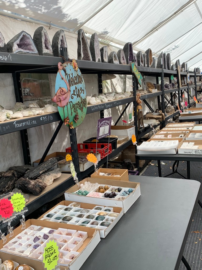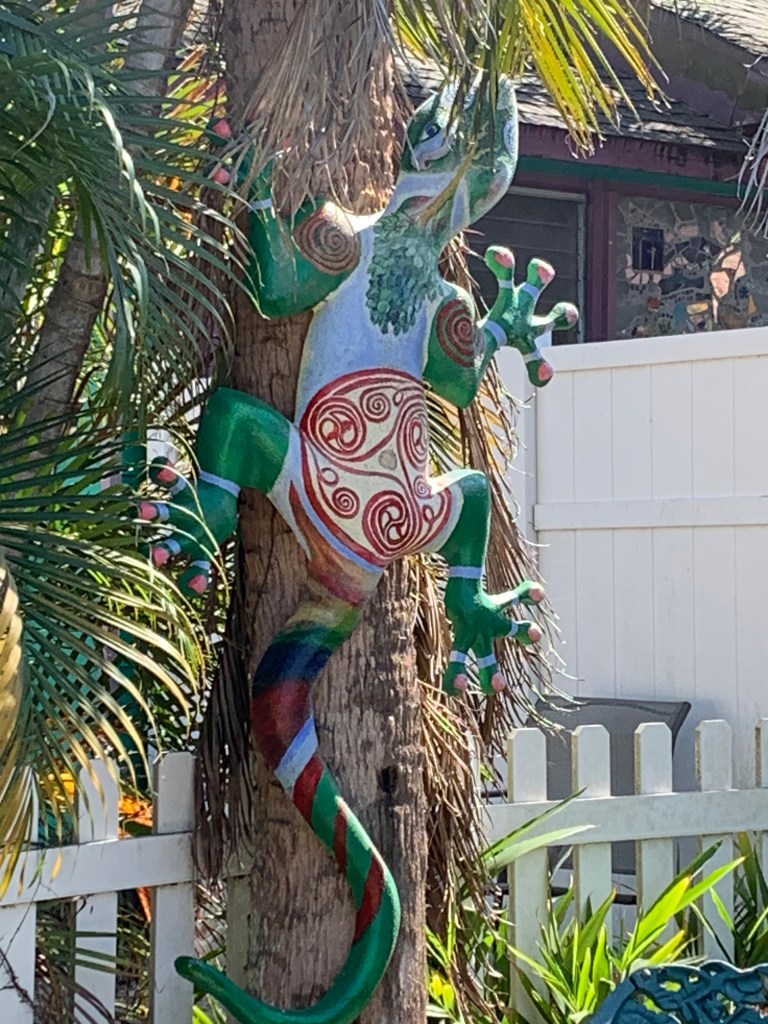 Village of the Arts in Bradenton, Florida is a fun way to spend a day. Although it is a residential area, many of the houses are also businesses selling all sorts of tchotchkes – everything from crystals and gemstones, to glass, pottery, a quilt fabric shop, jewelry, wind chimes and distinctly 70s-looking tie-dyed clothing. I was new to this whole house hopping, street shopping scene but it was entertaining. I didn’t find a lot I’d want to decorate my house with but there are lots of things that would make fun gifts and it takes serious browsing to find them.