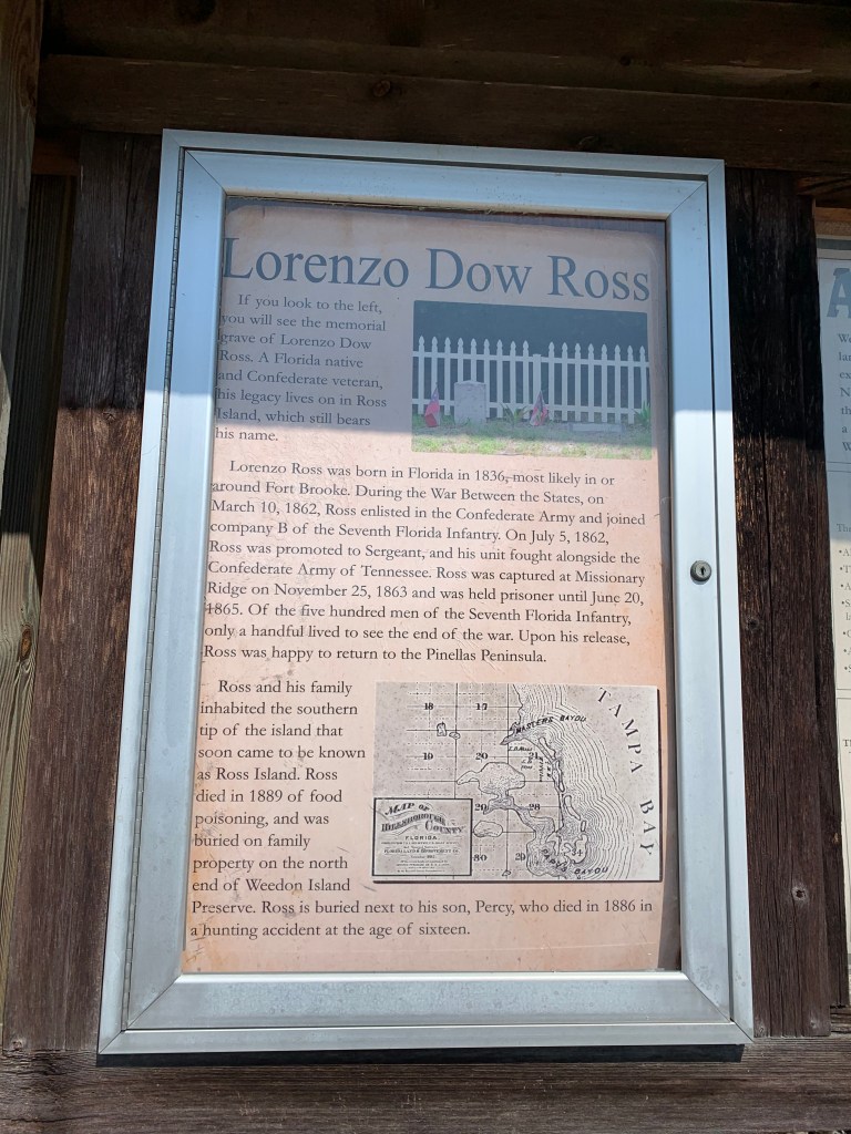 On your way out, stop by the gravesite on the side of the road. It belongs to Confederate Army officer Lorenzo Dow Ross. Born in 1836, he grew up in Fort Brooke (now the city of Tampa) and was one of only 452 people living there at the time.