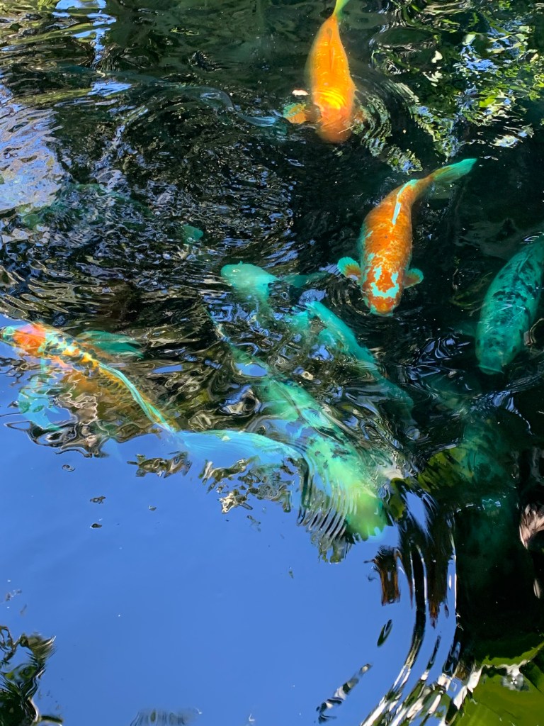 I had a couple of favorite areas in the gardens. One of them was the koi pond – something about rippling water, overhanging ferns, colorful fish and quiet.