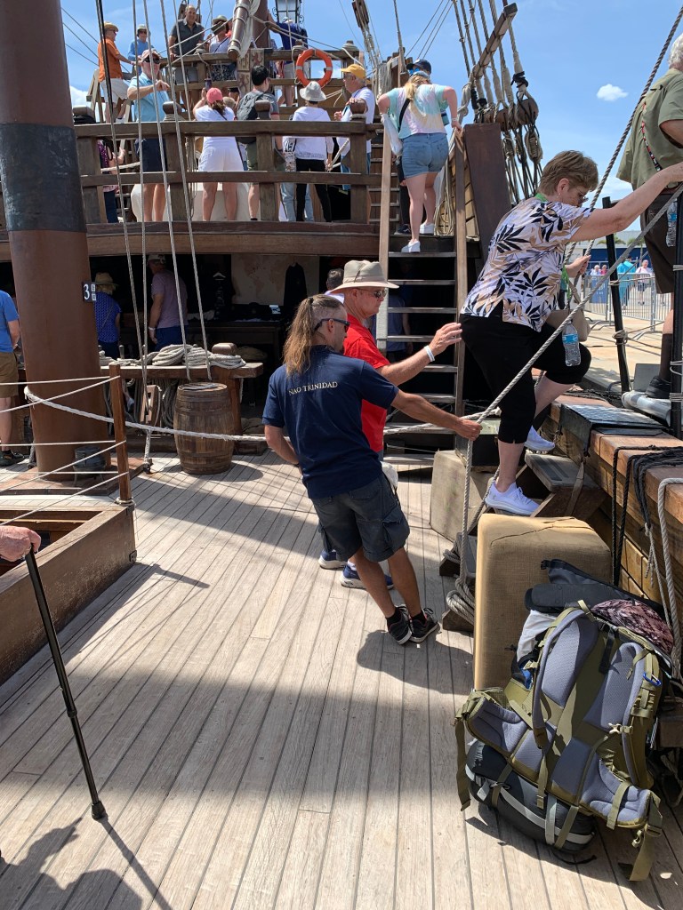 The Nao Trinidad’s crew was equally interesting. One young man was from Spain, and Wesley (pictured below) was from Puerto Rico. He told us he enjoyed being able to climb up to the crow’s nest at night and watch the stars. I’m a little jealous. It sounds wonderful. No noise. No lights to obscure the brilliance of the stars.