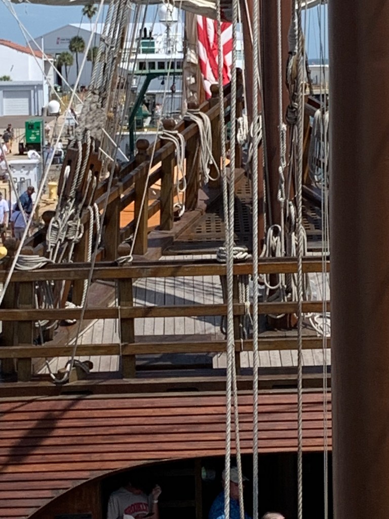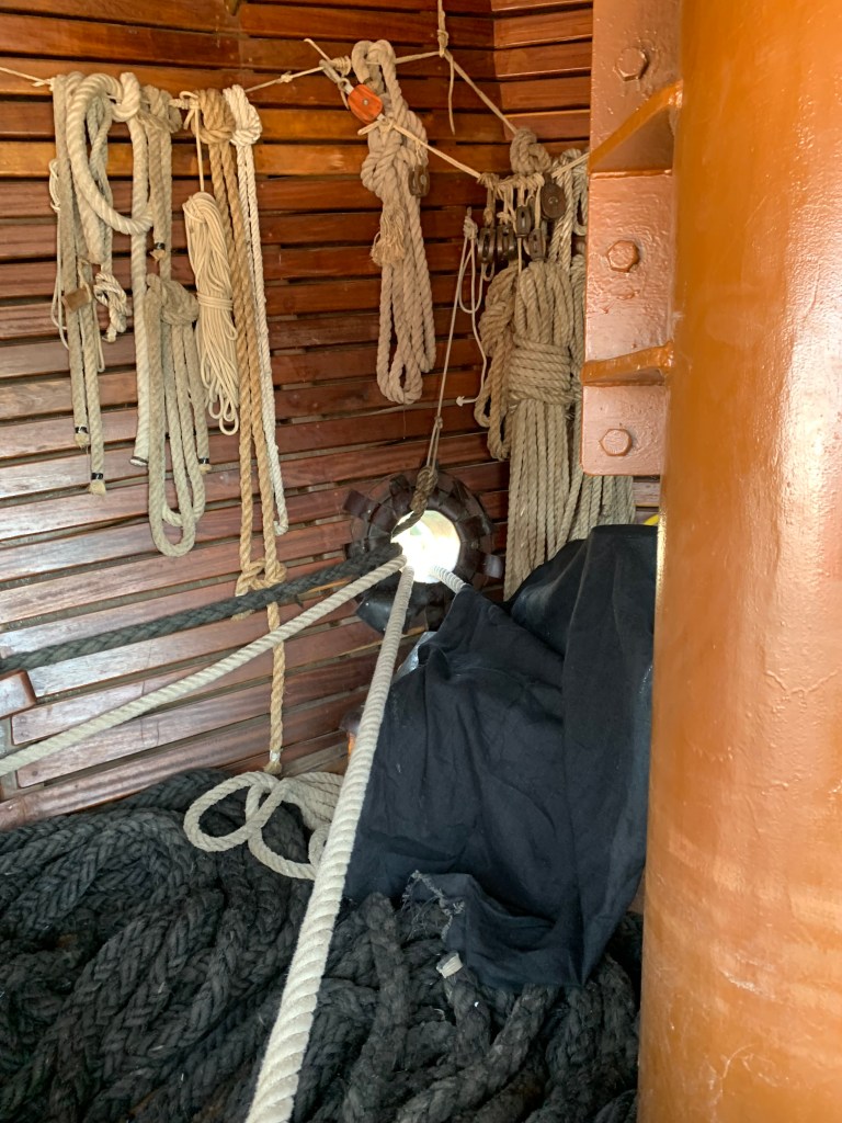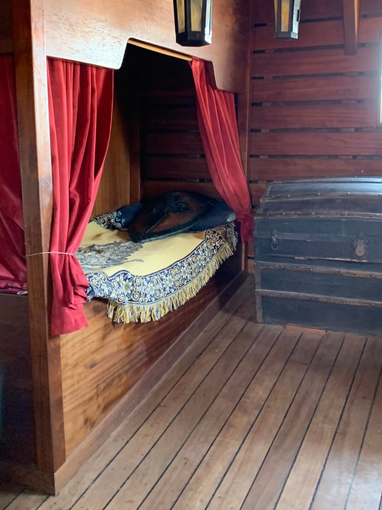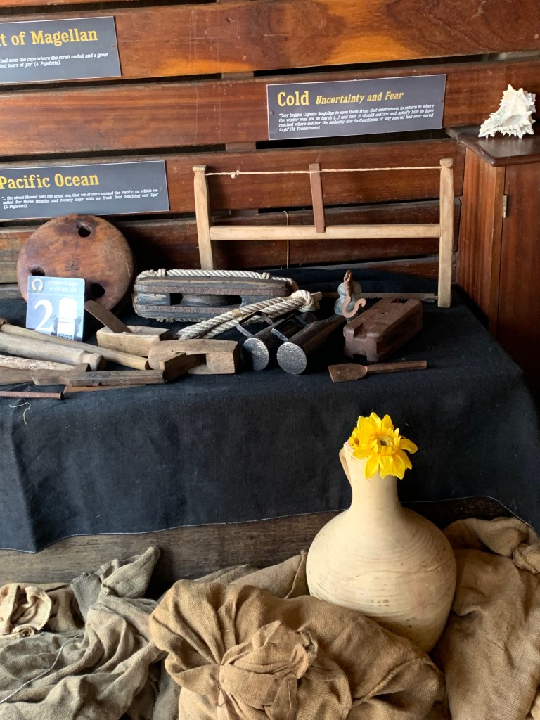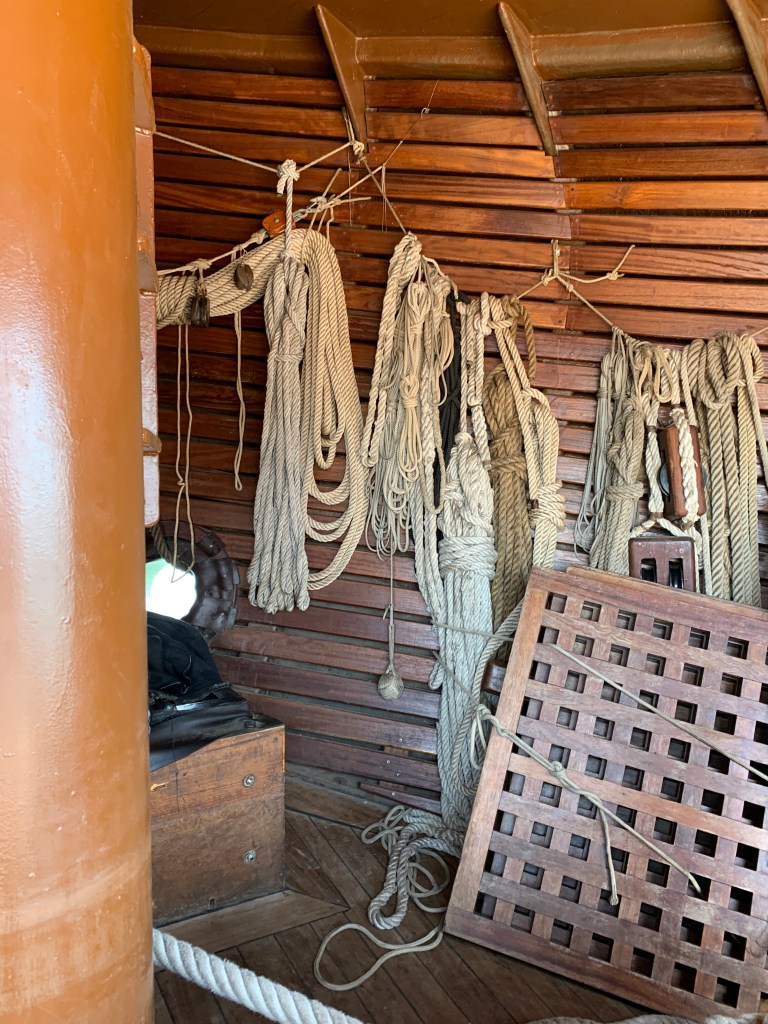 I especially enjoyed stepping onboard the Nao Trinidad. This vessel was a true-scale version of the original and built by Fundacion Nao Victoria, a Spanish institute specializing in historic ships. The reconstruction began in January of 2017 and was completed in March 2018.Although other ships had crew members who would answer questions, the Nao Trinidad was set up with signage (in several languages) to teach you about each area of the ship and its usage.