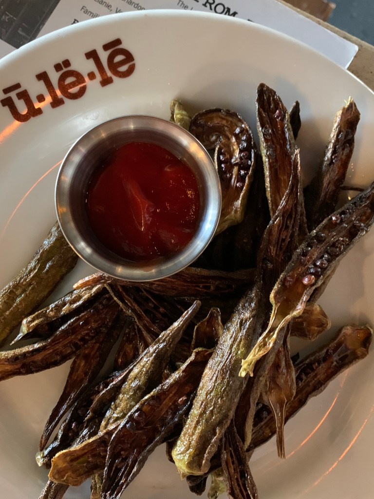 I opted for okra fries and the gulf grouper sandwich. I’m not sure what I expected with the okra but you’d certainly never confuse them for a side of fries. I couldn’t quite decide if I liked them. Okra always tastes earthy to me but then you add a smoky flavor on top of that and it makes an interesting combination.