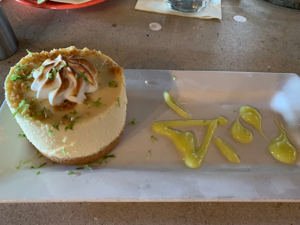 There are salads and sides if you’d prefer something even lighter and a great little dessert selection. They have pineapple upside-down bread pudding with a dark rum sauce, a flourless chocolate torte, Key West key lime stack, and candied bacon maple ice cream. Never one to pass up sweets, I settled on the Key West key lime stack and a cappuccino.