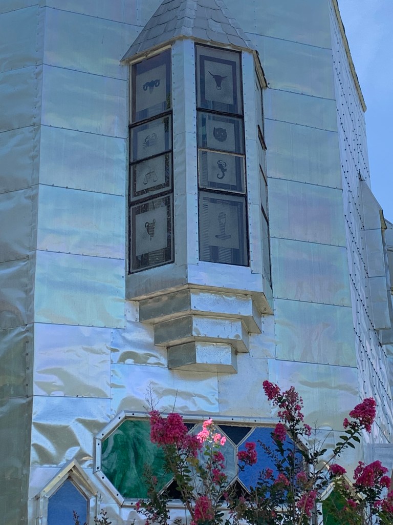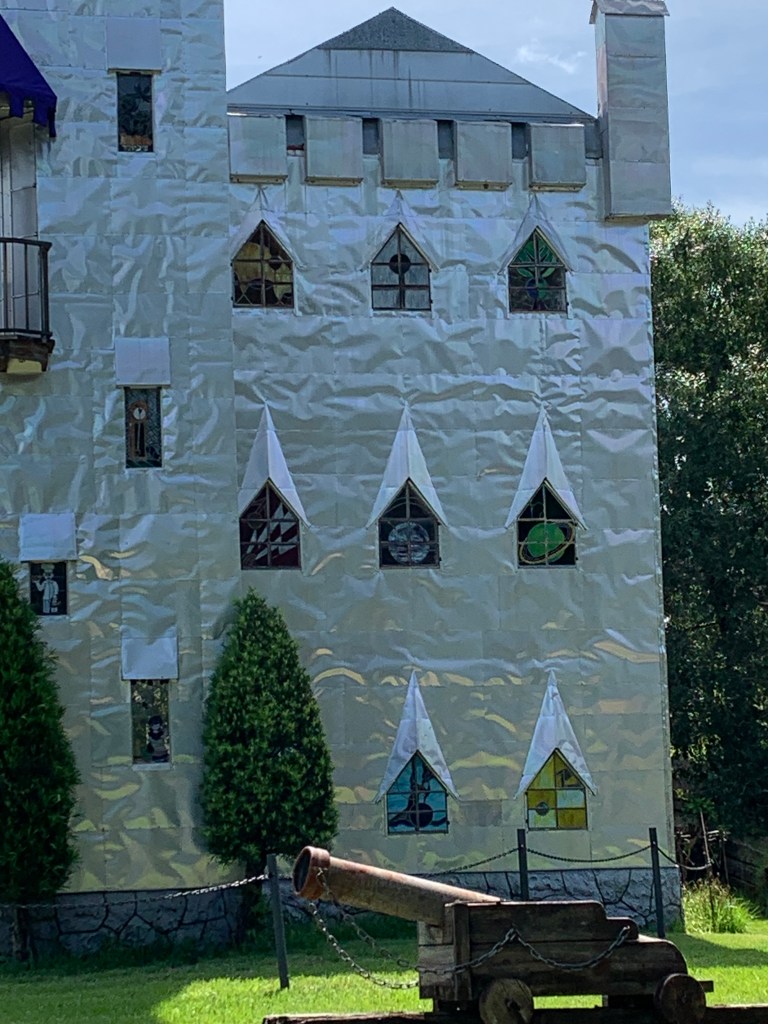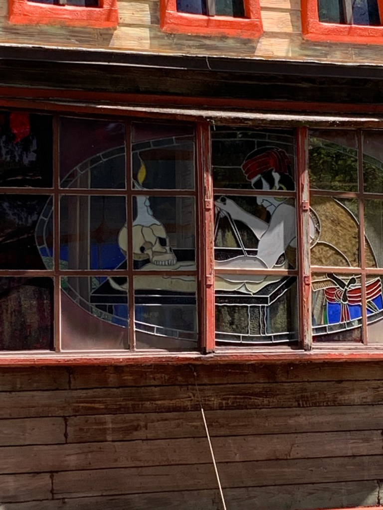 The outside of the castle showcases some of the 80 stained glass panes, all with themes – zodiac signs, fairy tales, seasons, and planets. And there’s also the balcony where he would hold court from time to time, expounding on favorite subjects. I’m guessing real estate wasn’t one of them.