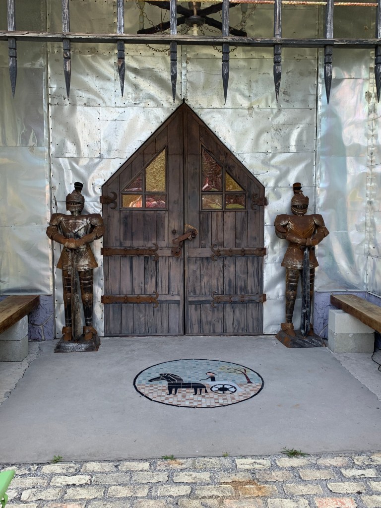 We were not allowed to photograph anything inside. Don’t ask me why. But here’s what I can tell you: Solomon wrote the script the tour guides were supposed to follow and it included a joke for almost every item we were shown. The first 5 were funny; after that, they became trite. I’ll give you two examples. There was a scrap metal car he’d created that had two bonnets (no trunk section) and the joke was that you’d never have to worry about a backseat driver, and you’d always know where you’d been.
