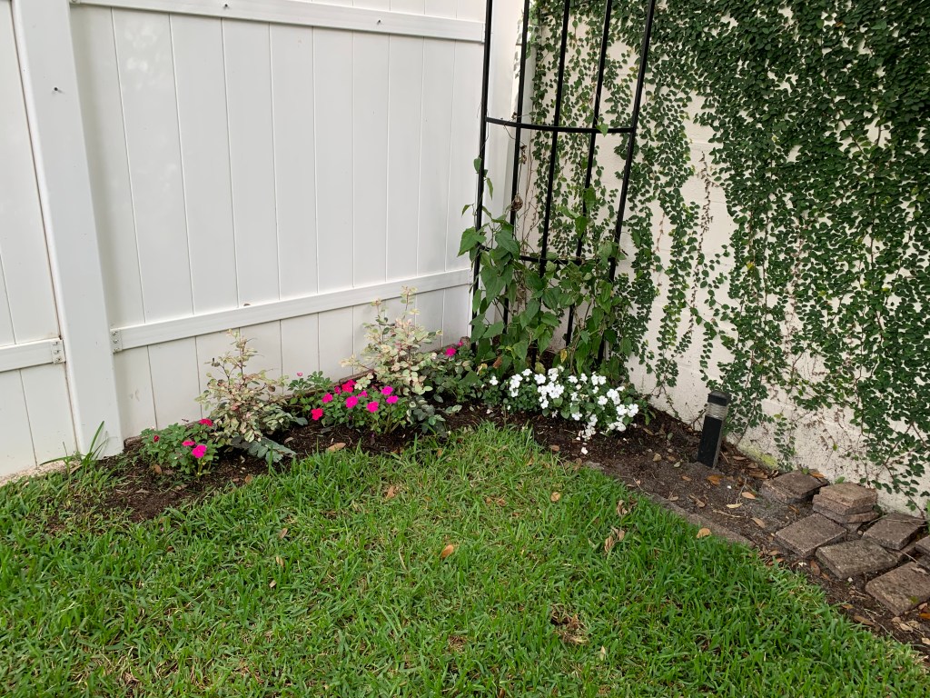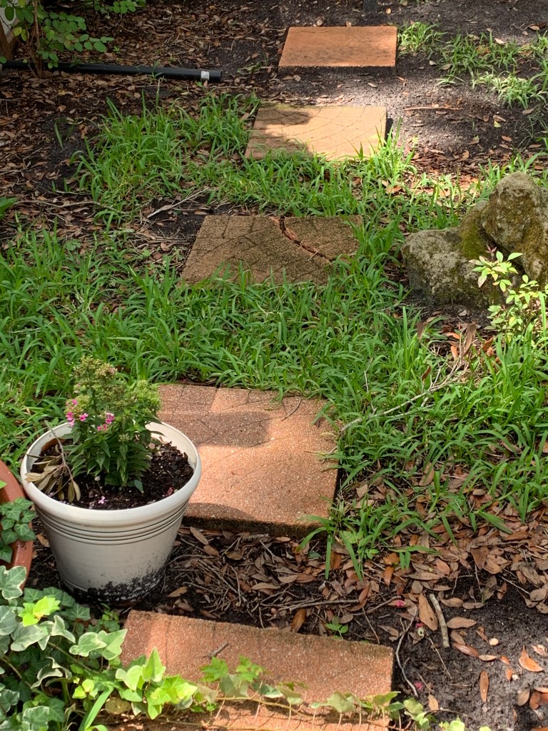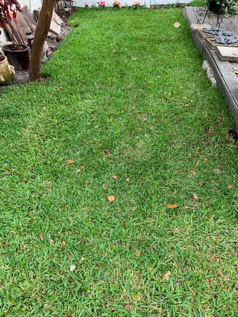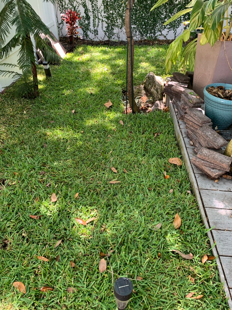 Too bad they don’t sell St. Augustine grass. I might have had a lush green carpet in my backyard by now. As you may recall from my post – “The Grass is Not Always Greener – or Even Green,” my experience with installing grass (by myself) from a couple of years ago was a total fiasco. Initially it looked great, but it seems all those pretty green squares came with chinch bugs and fleas. By the time I finished trying to treat and then reseed, most of the grass was dead. Not a good start to the garden design I dreamed of when I moved here from Las Vegas.