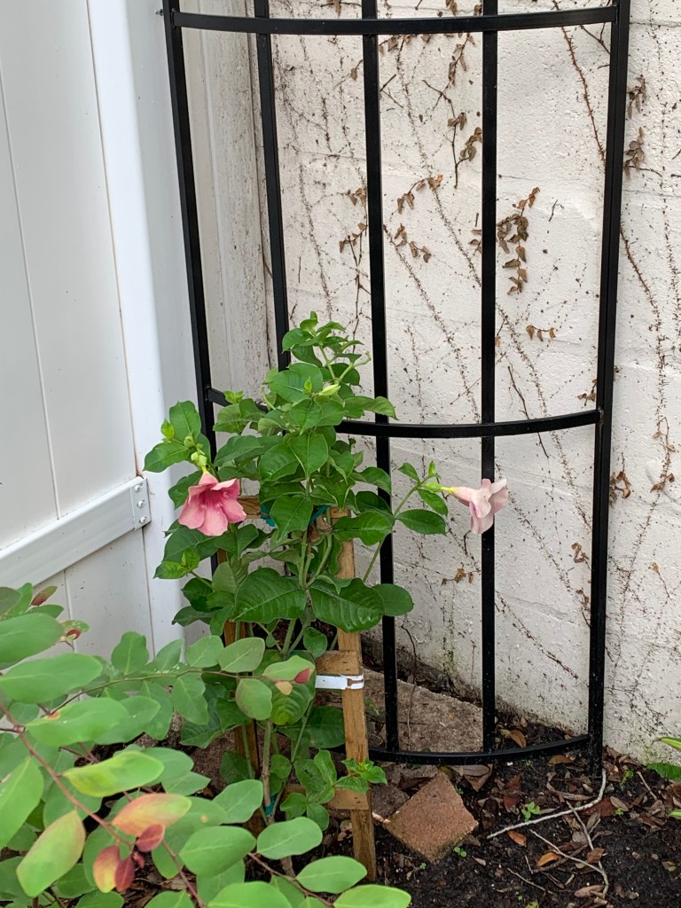 Ground gardening notwithstanding, I do all right with containers. I’m slowly nurturing a beautiful, eye-catching view of the deck from my porch. I may just end up with that Zen-ish garden I envisioned – containers in the foreground, fascinating shrubs, vines, caldiums and groundcovers in the background. In the meantime, the best thing I can do is plant things and then leave them the hell alone!