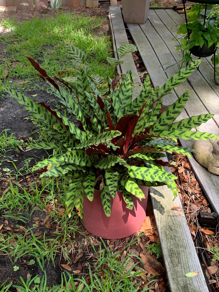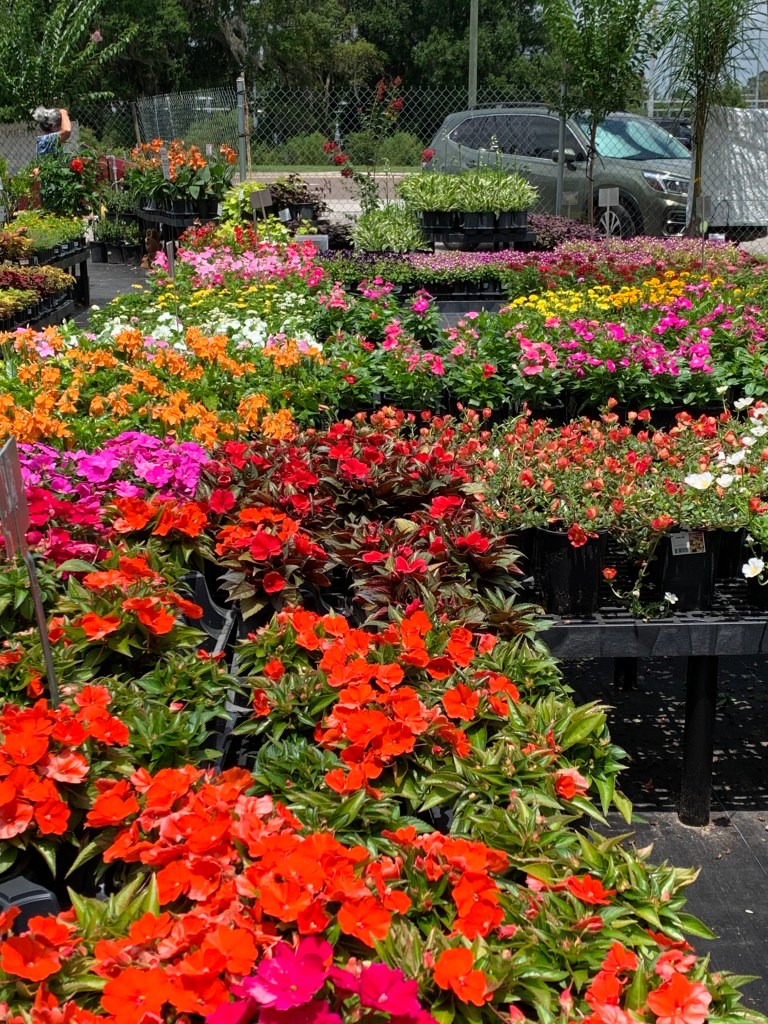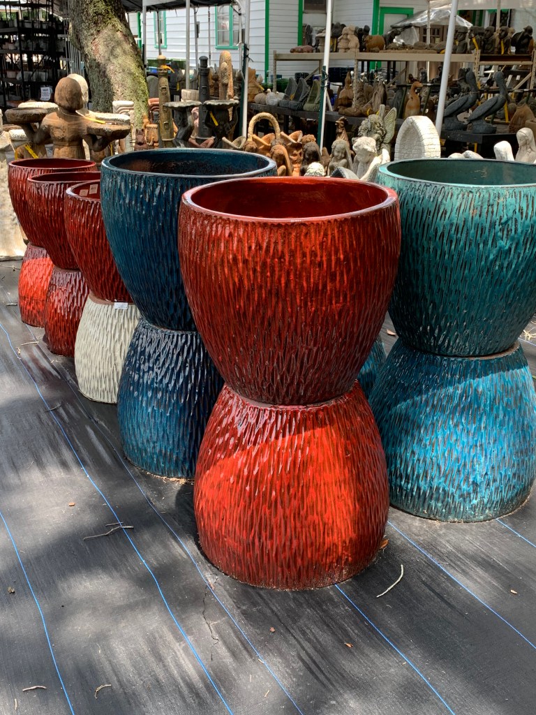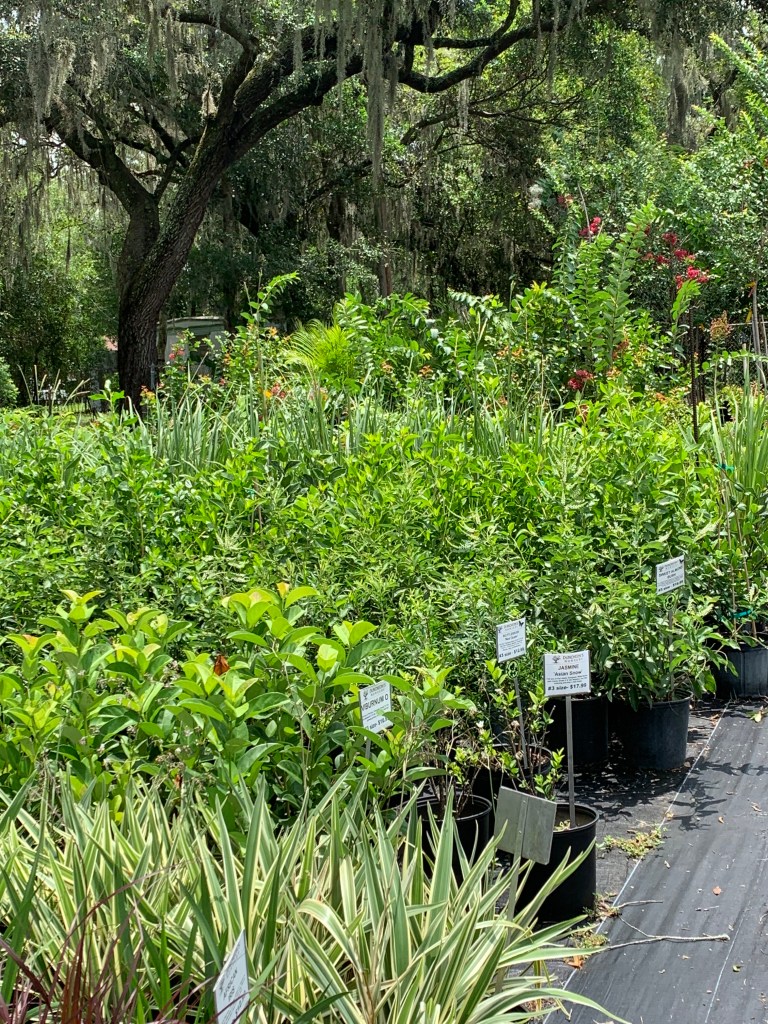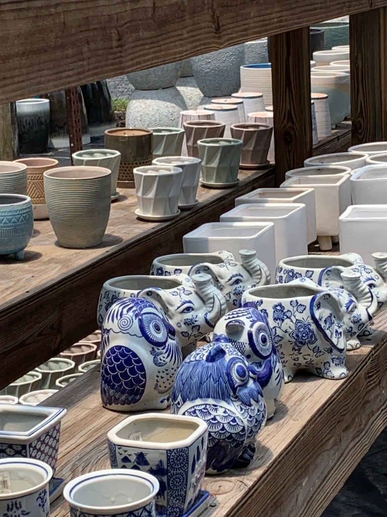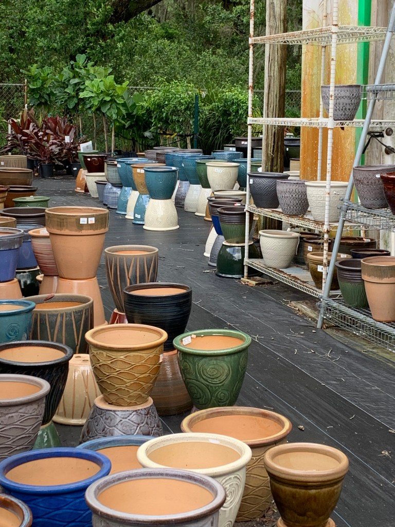 I have two favorite places for plant shopping: Duncheon’s Nursery (just down the road here in Florida) and Blue Buddha Farm (recent online discovery). Duncheon’s is smaller than the big box nurseries, but it also has more variety in a not-found-everywhere kind of way. There’s a little of everything – flowers, shrubs, ferns, grasses, tall trees, pottery, ceramics, tiles, fountains, garden art, fertilizers, soil, gloves, and even wind chimes. (I’ll get to my Blue Buddha Farm discovery later).