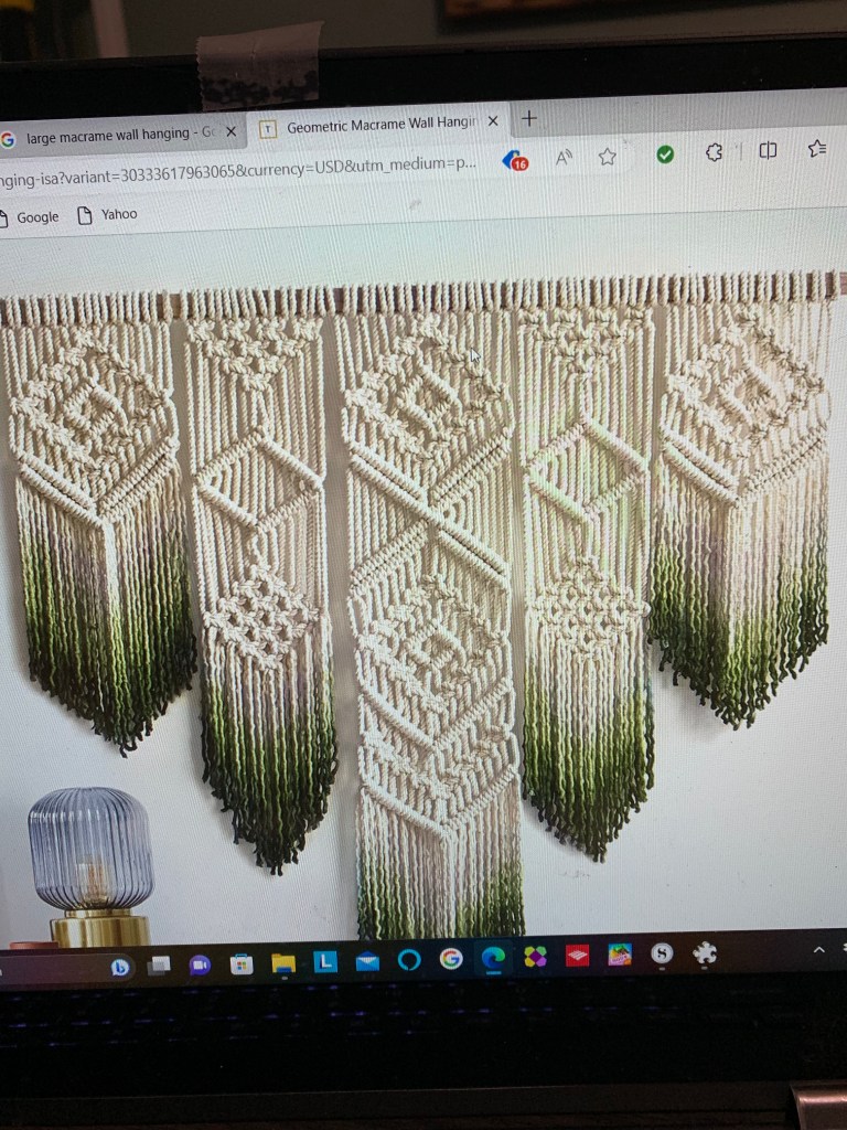 I decided I wanted to do macrame and I ordered a kit. I should’ve known from the online reviews not to get it, but I never learn anything the easy way. The comments said the directions were confusing. I’m a knitter and very good at reading directions so I figured those reviewers just weren’t as adept. I assumed I’d be fine. Boy, was I wrong. It has now been several months since I tackled the kit and I still haven’t finished it.
