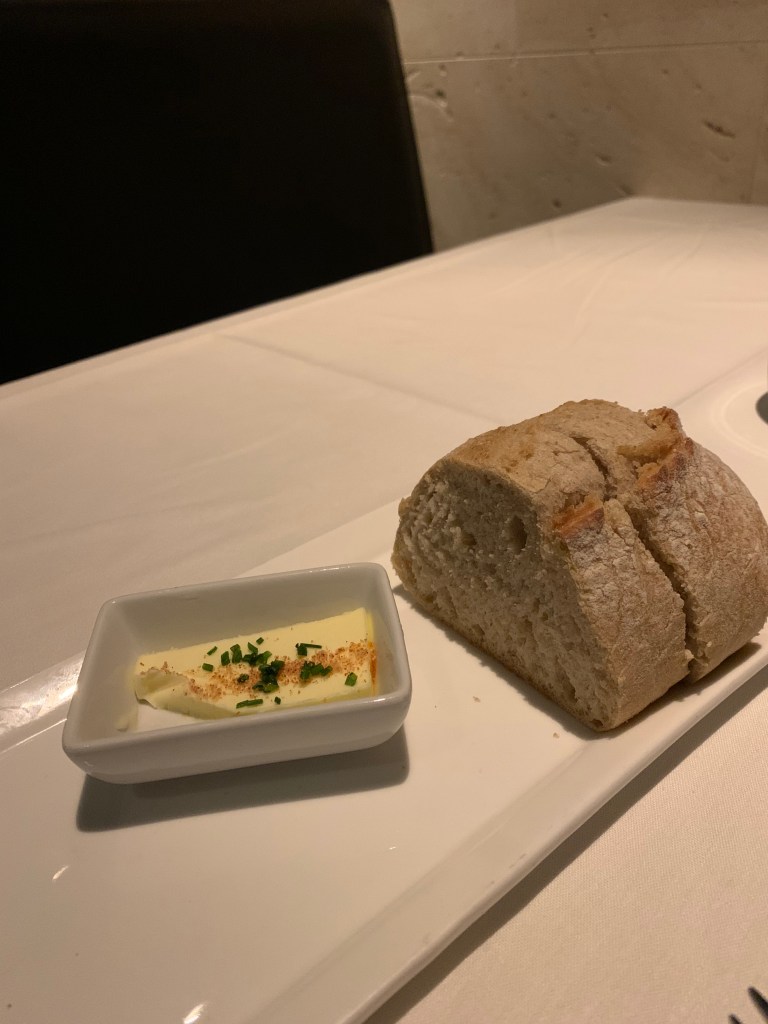 While I studied the menu, they brought warm bread and a delicious butter laced with who-knows-what that was so fabulous it made me want to order about a quart of it and take it home.