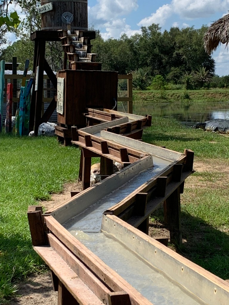 Since the store took about ten minutes, I looked around for something else to do. I eyed the gem mining skeptically and asked how it worked. I was told that I could purchase a bag of dirt, put it in a tray and allow the running water to reveal any gems. I asked what gems I might find and they produced a laminated card with about a dozen or so. I don’t think of Florida as a huge gem-mining state so I wondered where they were from. It turns out, they purchase dirt from mines in another state. The bag may, or may not, contain gems, in which case you’ve paid a minimum of $10 for your dirt.
