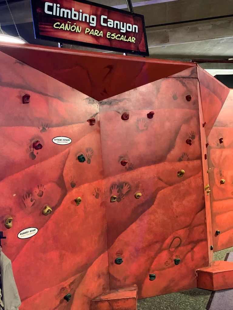 The museum’s vast indoor space includes a climbing wall, a dinosaur skeleton and a planetarium. I couldn’t find any rhyme or reason to the things that were included and how they were set up.