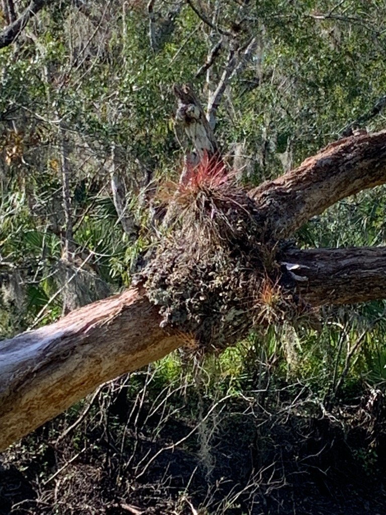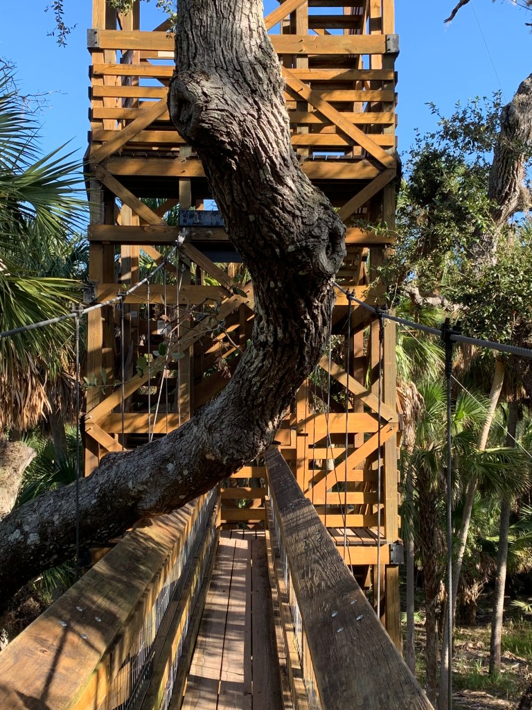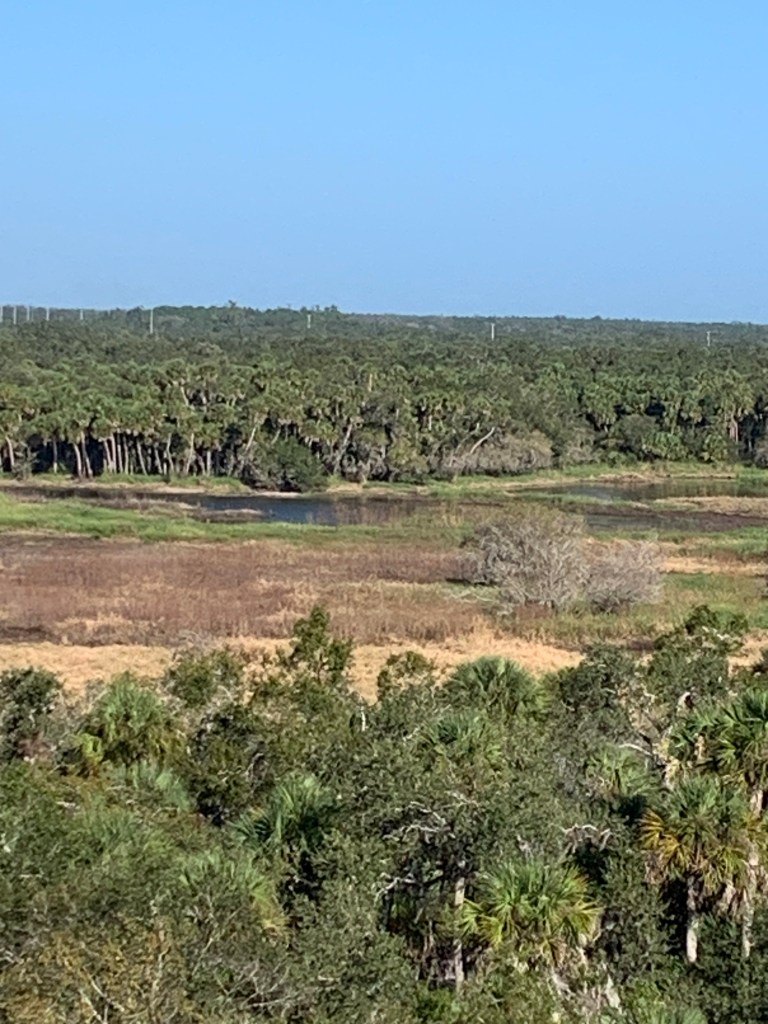 I went there for the canopy walk but discovered the scenic drive was far more impressive. The canopy walk looks spectacular in photos but, as it turns out, is 85′ that feels like about 6′. On the far side, there’s a 74′ tower that rises above the tree line. I was hoping to see – I don’t know – something spectacular. The panoramic view included the tops of trees but that was about it. There was one lone ibis in a swampy area near the tower but I’m sorry to say that didn’t hold my interest very long since that’s a common residential sight in Tampa. Ten minutes and I was done.