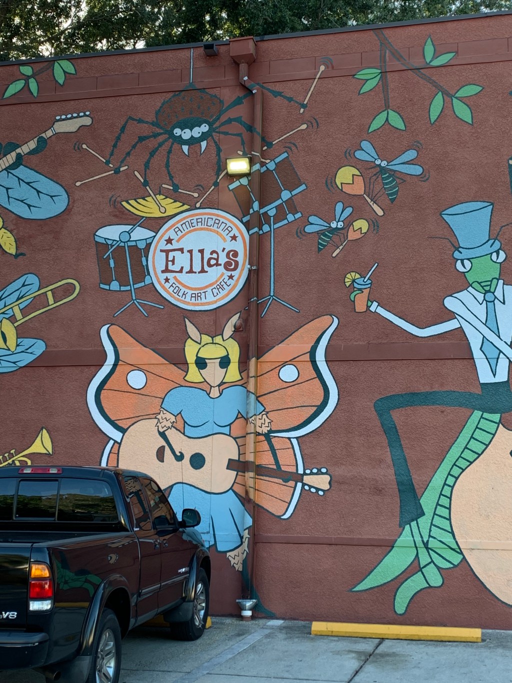 You know how you walk into a new place and it just has that great vibe, that je ne sais quoi? Ella’s is that place. It’s warm, inviting and ever so slightly offbeat with its sculptures and parking lot murals.