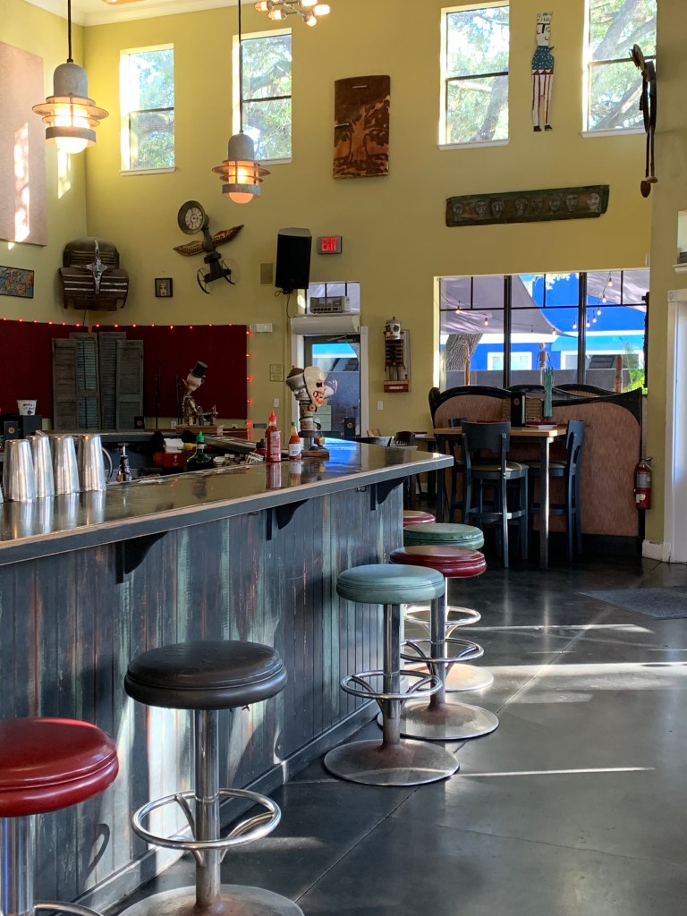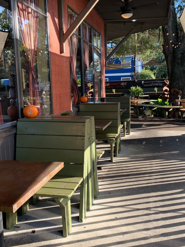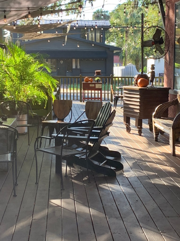 Ella’s was established in 2009 in Tampa’s historic Seminole Heights district. The website says it’s a place where “blue hairs hang out with blue hair.” I found that to be true. Officially old enough to be a blue hair, I had a young couple with their dachshund, Pippin, sitting right behind me in the outdoor garden section. So yes, it’s appealing to all ages. And if you don’t want to be outdoors, the inside is just as inviting.