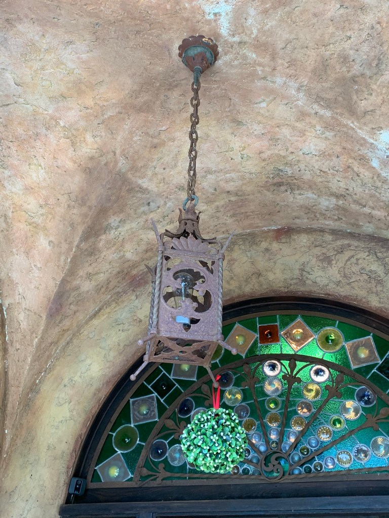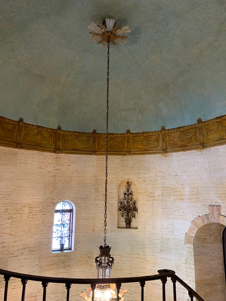Heading back to the interior staircase, we got a good look at the center chandelier. Our guide told us that during the restoration of the property, they brought in a crew that was able to reach the top of it and lower it safely to ground level to be cleaned. Only later was it discovered that the whole thing is attached to a pulley system in the attic.