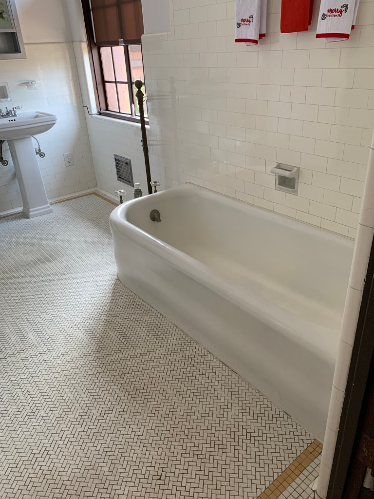 Then there is the mammoth master bedroom and bathroom. I’m pretty sure there’s enough room in there for several couples to practice their Charleston steps before heading down to the party. And in the adjoining master bath, Mr. Howey, a man over 6′ tall, installed the longest bathtub I’ve ever seen.