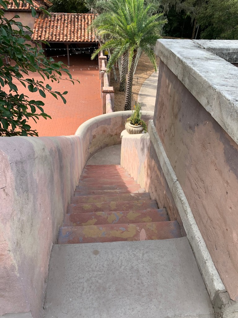 One of those 6 bedrooms has this darn-near perpendicular ladder leading to the castle’s turret. Can you imagine the well-dressed flapper female scampering up for a view of the grounds?