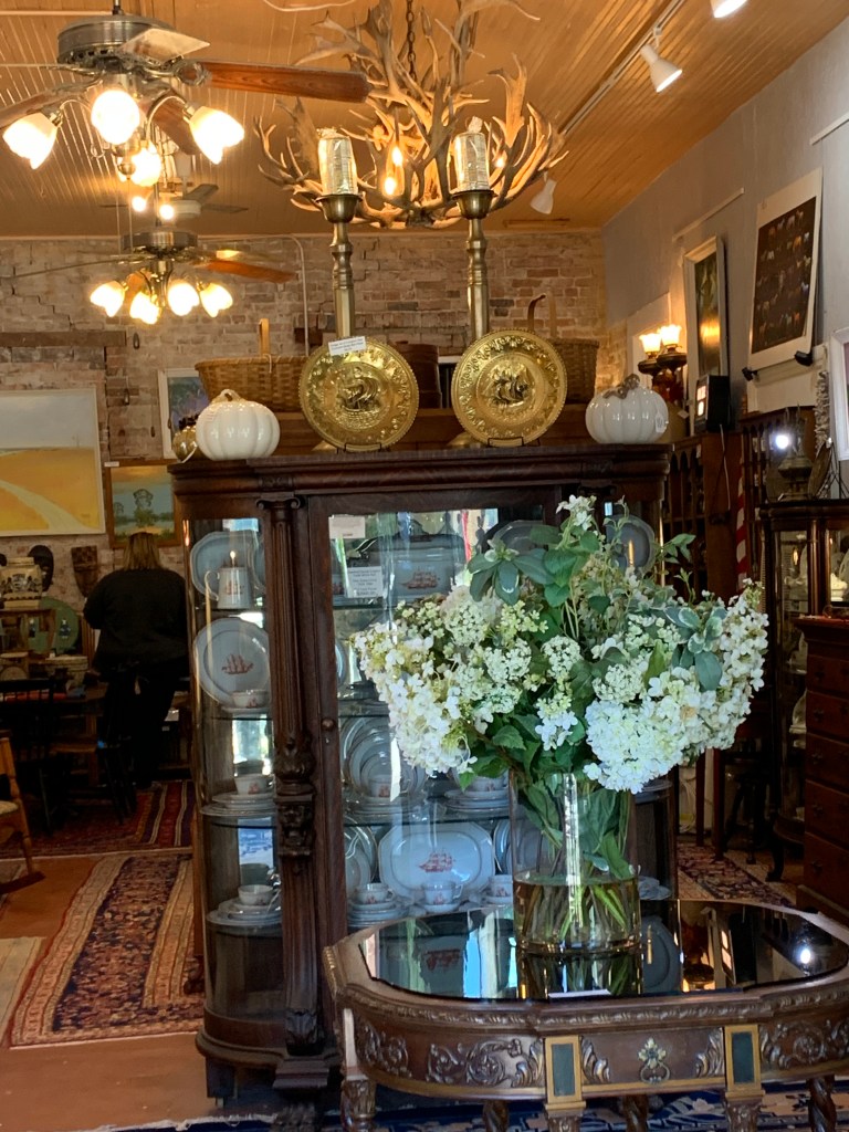 The next shop had a sign in the window asking us to keep the door closed so Jimmy wouldn’t get in. Little did I know, until I asked, that Jimmy was the cat I saw lounging on a lovely antique couch in the back of that same first store.