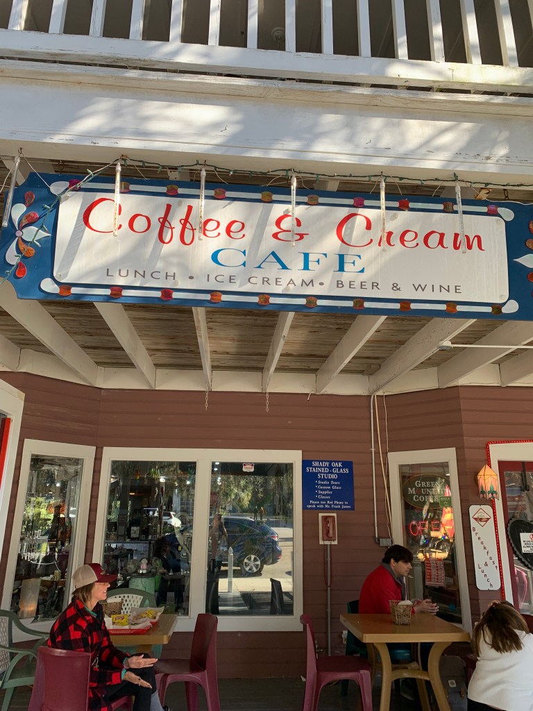 I assured the proprietress of the third store I entered with a “Jimmy” sign on the door that he was comfortably napping several shops down. Since it was now lunchtime, I asked her where she thought I should eat. Trust me, the locals always know the best places. She said Coffee N Cream was highly recommended and that she’d just dispatched her husband to bring her a bowl of potato soup because it was fabulous. I know we’re told not to judge a book by its cover, but glancing up and down the small main street – no ultra modern restaurants with trendy signs – it was hard to imagine not being able to pass up the soup.