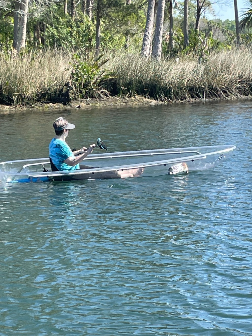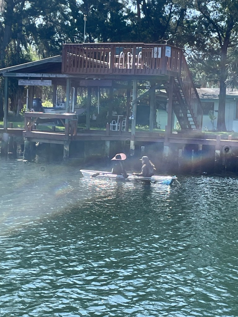 We rounded a bend where our guide excitedly pointed out a baby manatee in the middle of the river. Really? Where? The two kayaks flanking the baby seemed to see it but, dragging up behind them, they had to point out his two little nostrils when he surfaced for air before I saw anything. Even then, it was only the nostrils. Well, ok. Maybe things would be better when we hit the crystal-clear water.