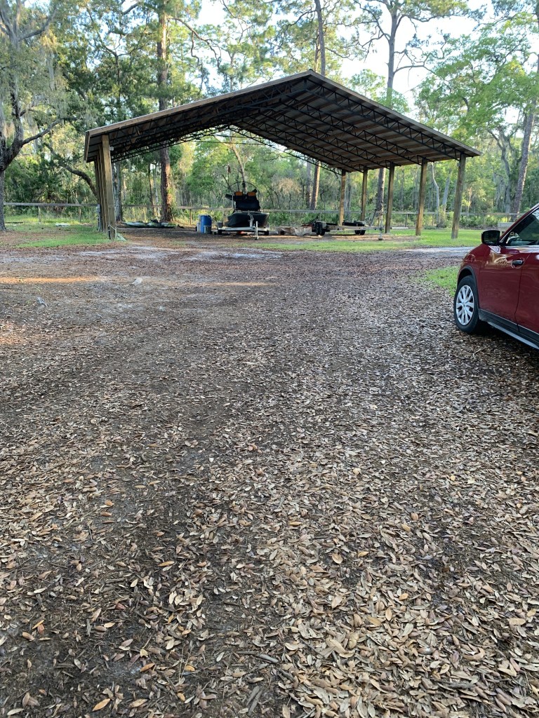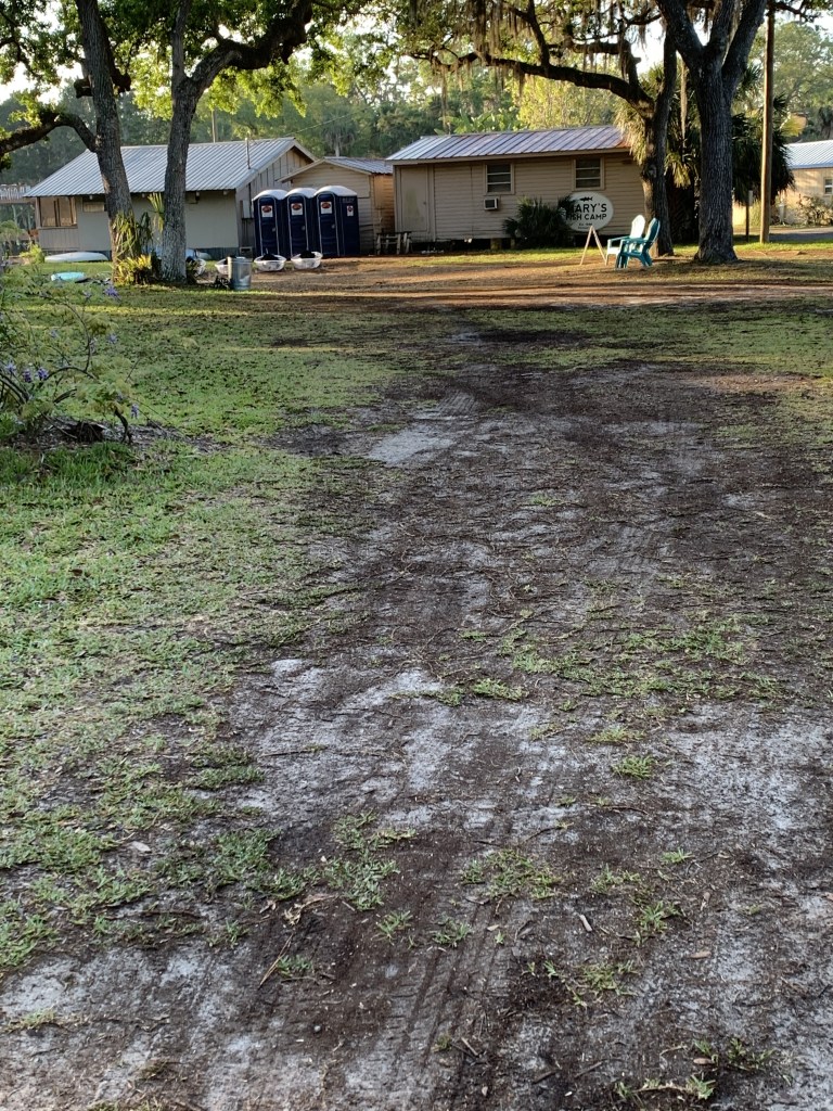 This time, I followed my GPS into what looked like a trailer camp. Trailers were parked in no discernable line or direction. With no clear parking lot in sight, I looped around the dirt track before finally asking a woman out walking her dog where I was supposed to park. I chose a spot across from a dilapidated cabin. It didn’t look occupied (none of the cabins around the area did) and was beat up enough that I hoped it was some sort of equipment storage unit.
