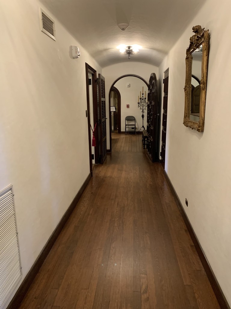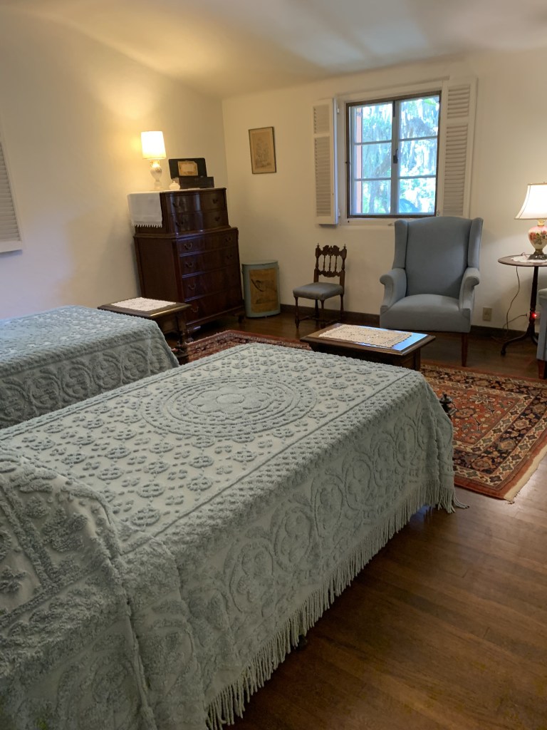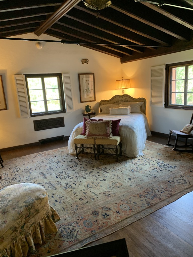 The second floor has the private bedroom for Mr. Buck, two guest rooms with their own en suite bathrooms, a wing for the support staffs’ quarters and his daughter’s spacious bedroom overlooking the front fountain and gardens. She would frequently arrive two weeks early to make sure everything was stocked and ready for his arrival.