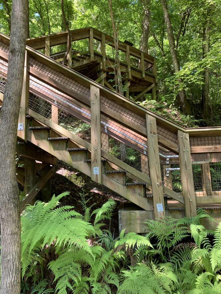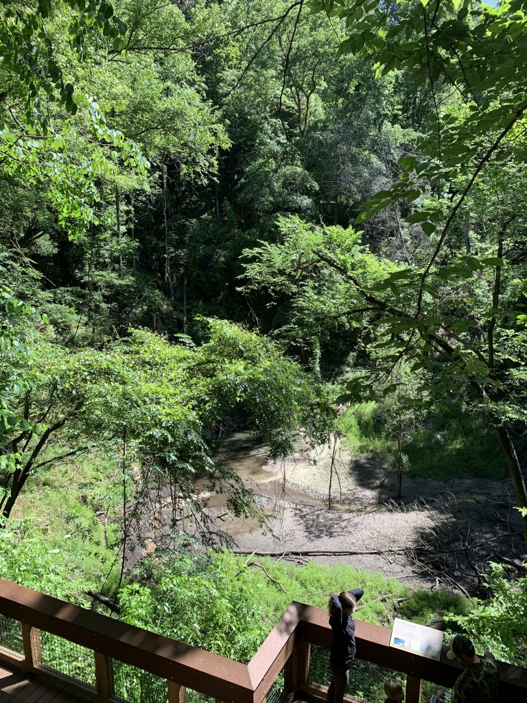I descended to the bottom of the viewing area to see a trickle of water off to the right and a large mud puddle in the center. I asked a nearby couple about the waterfall and they said they’d never heard of the sinkhole having one. I snapped a few pictures and then hauled my butt back up the 132 steps to the top.