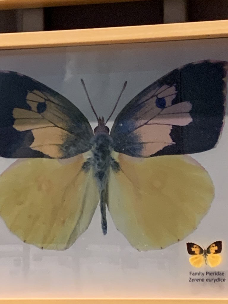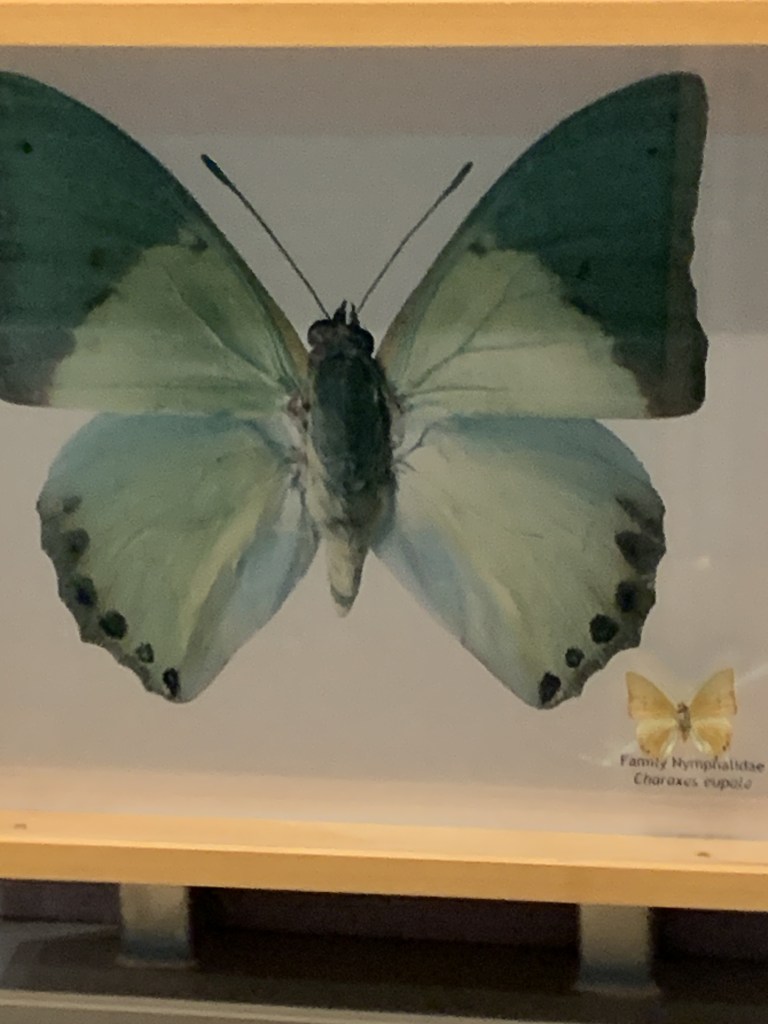 Why yes, in the museum. I retraced my steps. At this point, I must admit I looked forward to air conditioning. I paid the entry fee, then (for once) followed the directions around the corner. All I saw were walls of pinned specimens – beautiful, yes, but pinned.